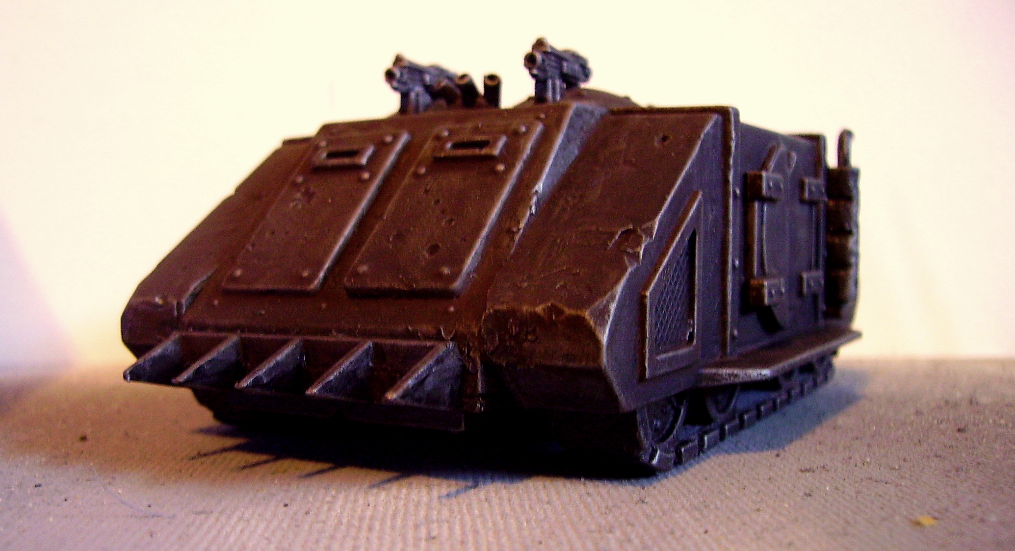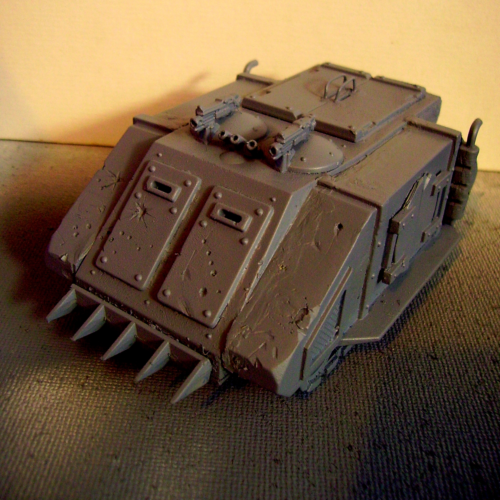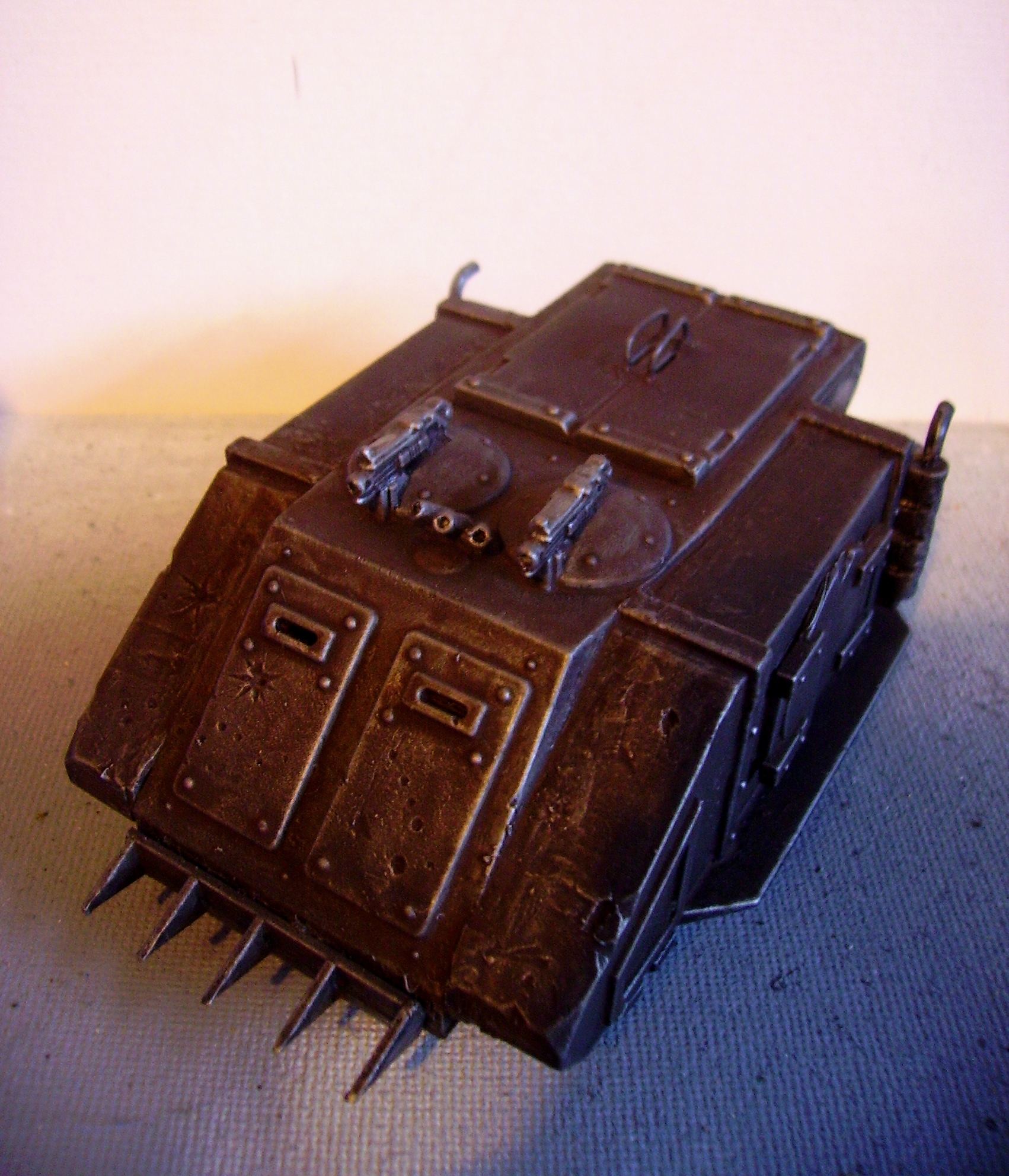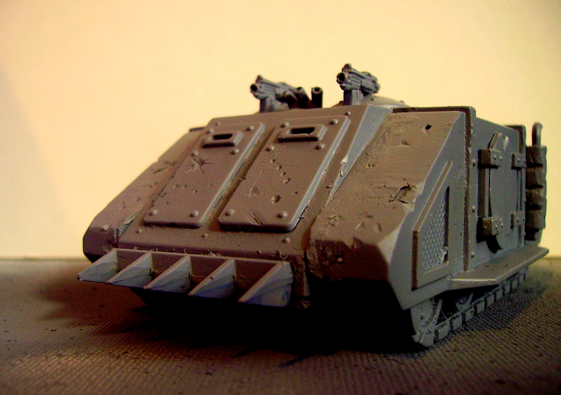 I have given my rhino 7 layers of different paint and wash - and only just decided who is getting it - it will be a tech-guard vehicle (my imperial guard are meant to be a mars legion) with cog symbols. I will get the delaques something a bit more civillian.