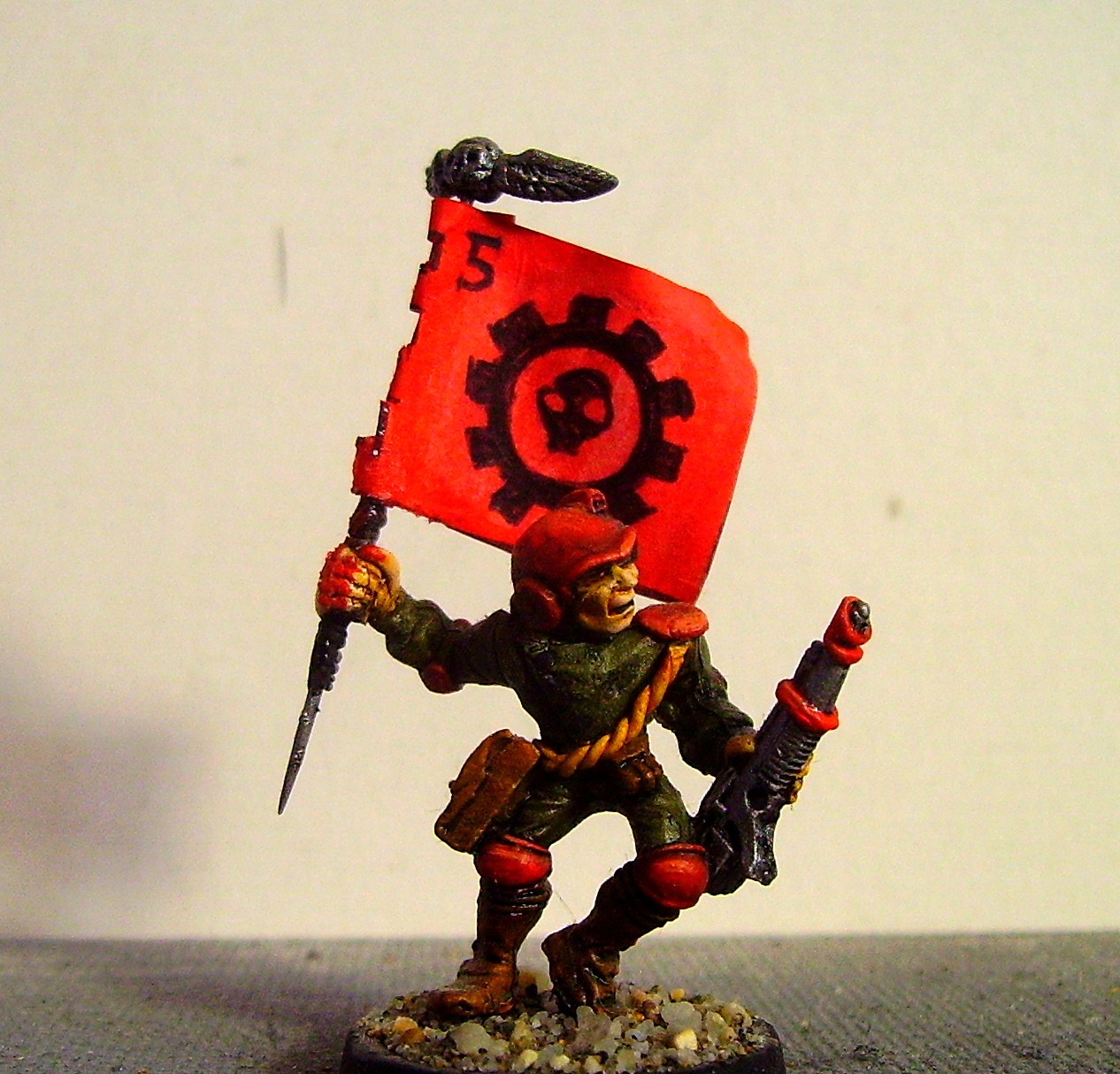 I'm waiting on some Delaque gangers to arrive from merry old England so I can convert them into Valhallan penal squaddies. I imagine a nice barcode on their forehead should do. Plus some autoguns to represent them getting the crappy munitions left lying around from the last batch. Waiting on mail from the UK to arrive is agonizingly slow though.