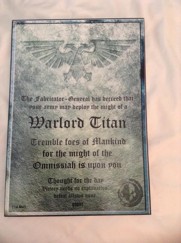 I was expecting the warlord certificate to be more gaudy, gold edging or something - also, i was expecting them to change the date of issue to nearer M30.