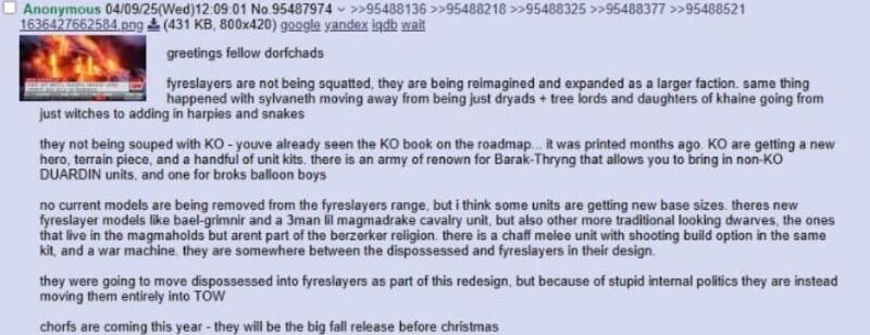 Image from TGA rumor thread. Take with some salt, as anytime I see "anonymous" and this website format (is it 4chan?) I get highly skeptical. Kind of wishlisty and also looks too on the nose for what FS players want. A special character, lil magmadrake cav, war machine and non-FS duardin. The pre-amble about building out the faction makes sense, but I have my doubts. I want to believe, as the Grombrindal stories hint at something big coming, but it looks too good to be true.