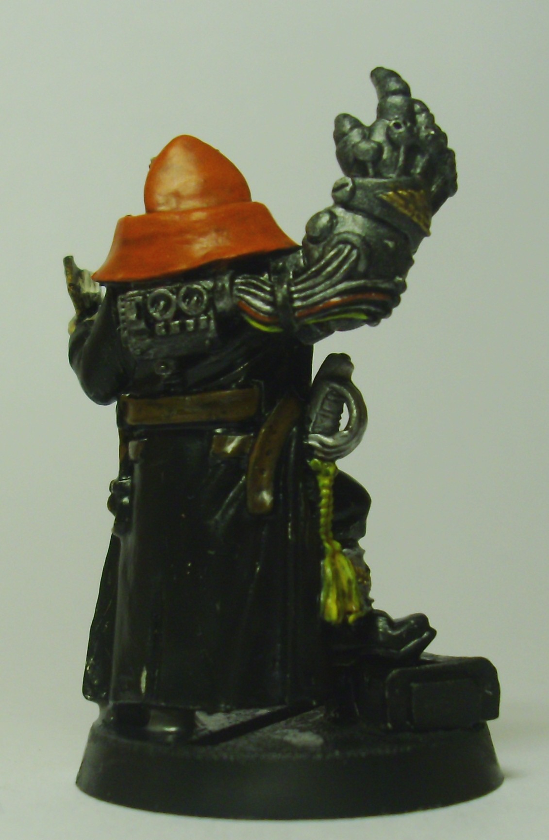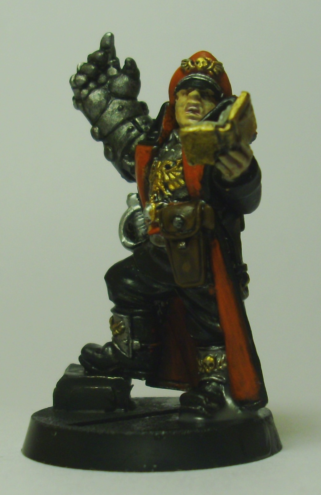 I've been distracted lately, making one-off conversions for the 40k RPG Dark Heresy. I did manage to get my Creed "counts-as" kitbash done in between converting bouts. I also liberated a righteous tool of the Emperor from filthy Xenos Ork hands, and have been making an effort to restore it (it's pretty rough, as you can see in the picture.