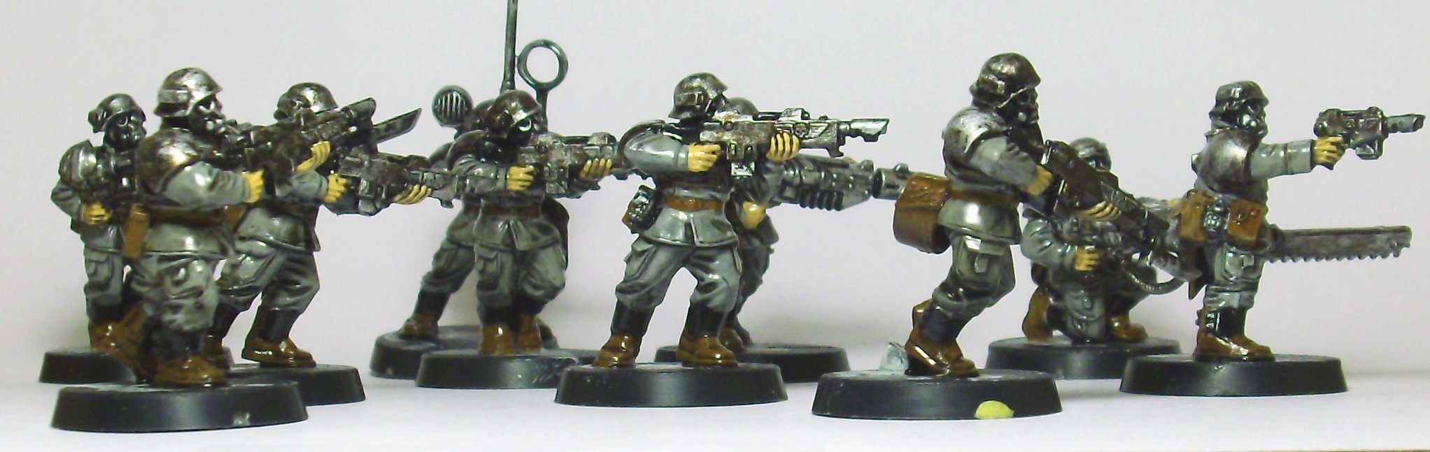 I like what you've done so far. The respirators really add character to the models, especially in the commander and sniper.
