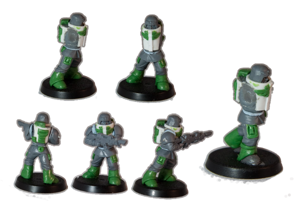 As mentioned earlier, I still need to find some spare bitz; namely enough plastic marine flamers and meltas to give to give everyone the right equipment, plus a batch of guard gas masks and SM Scout goggles to finish my platoon. If anyone has any spares they want to sell or swap, please yell as these are always out of stock at the bitz places