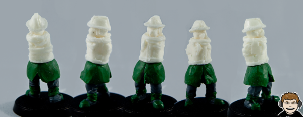 I've tried adding on some edging to a couple of the coats, but it's going to take some practice to get them looking smooth and strap like. The different lengths of coat don't really matter to me as I want a rough looking regiment. In fact, you can see one of them has a ragged edge already