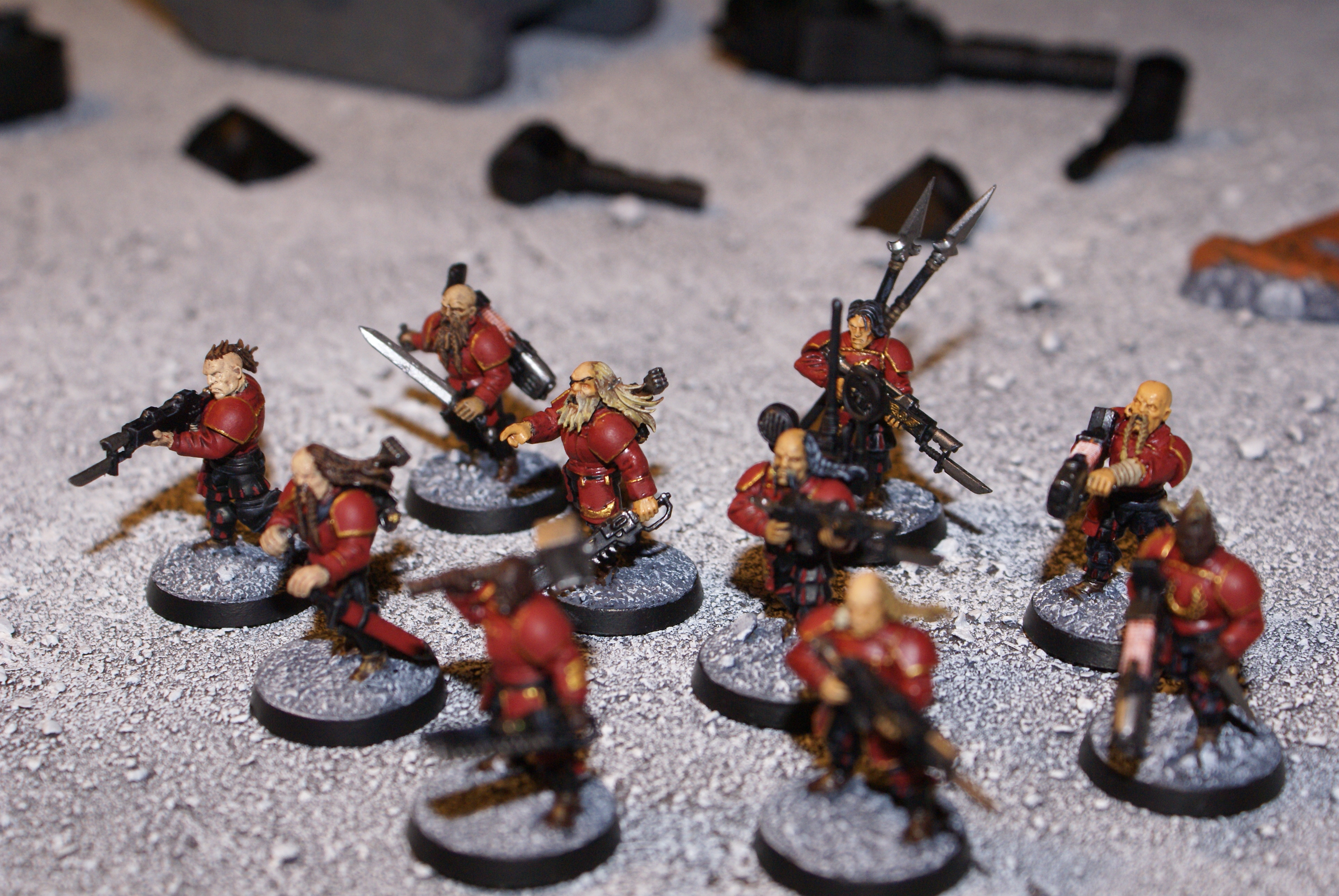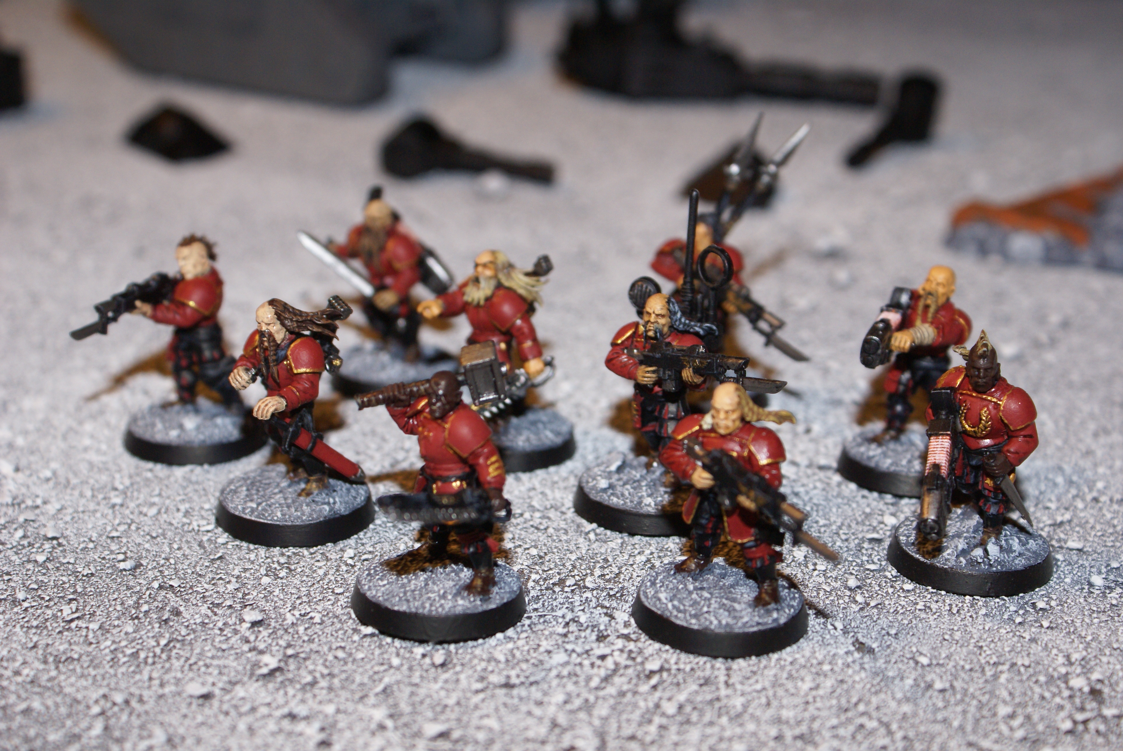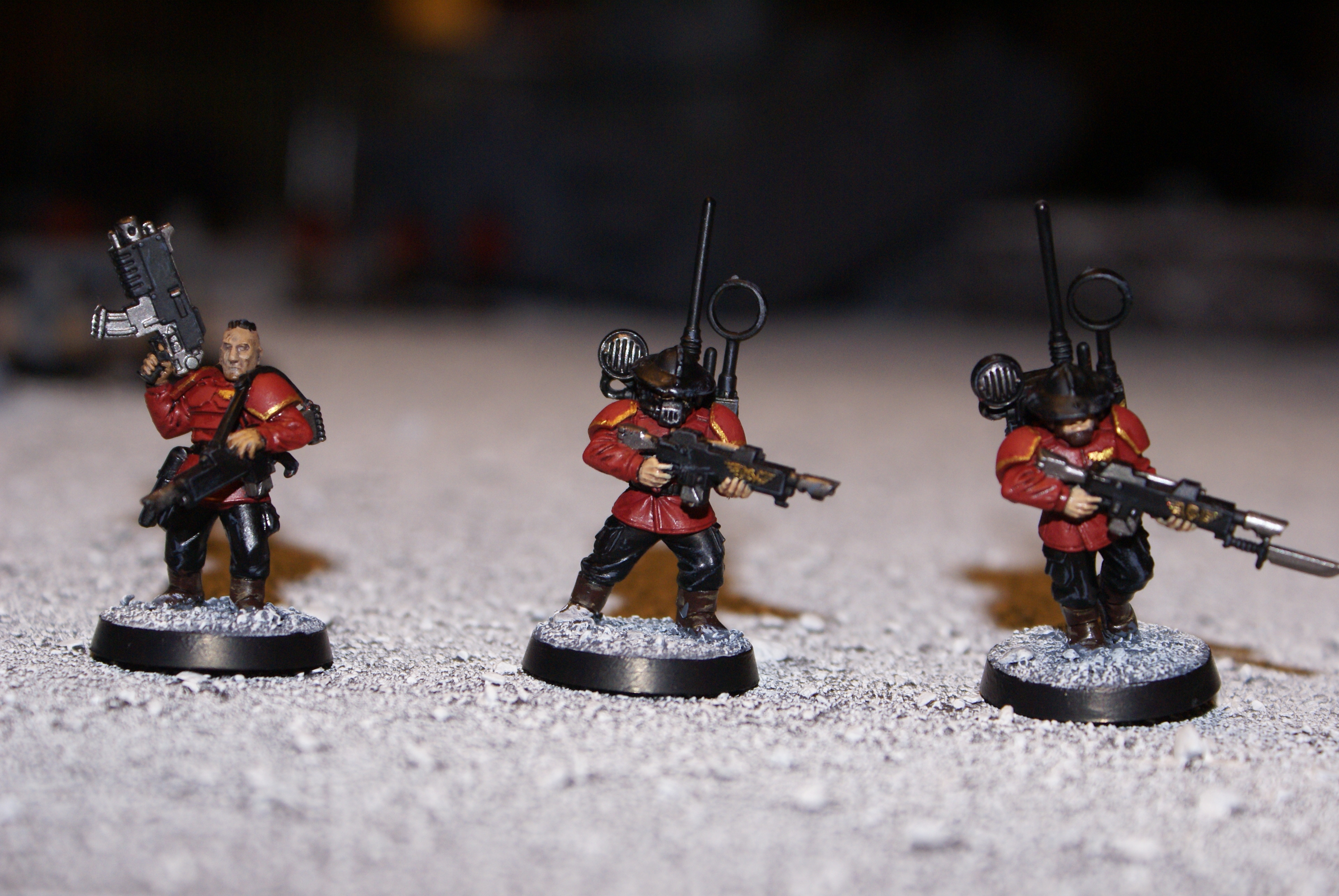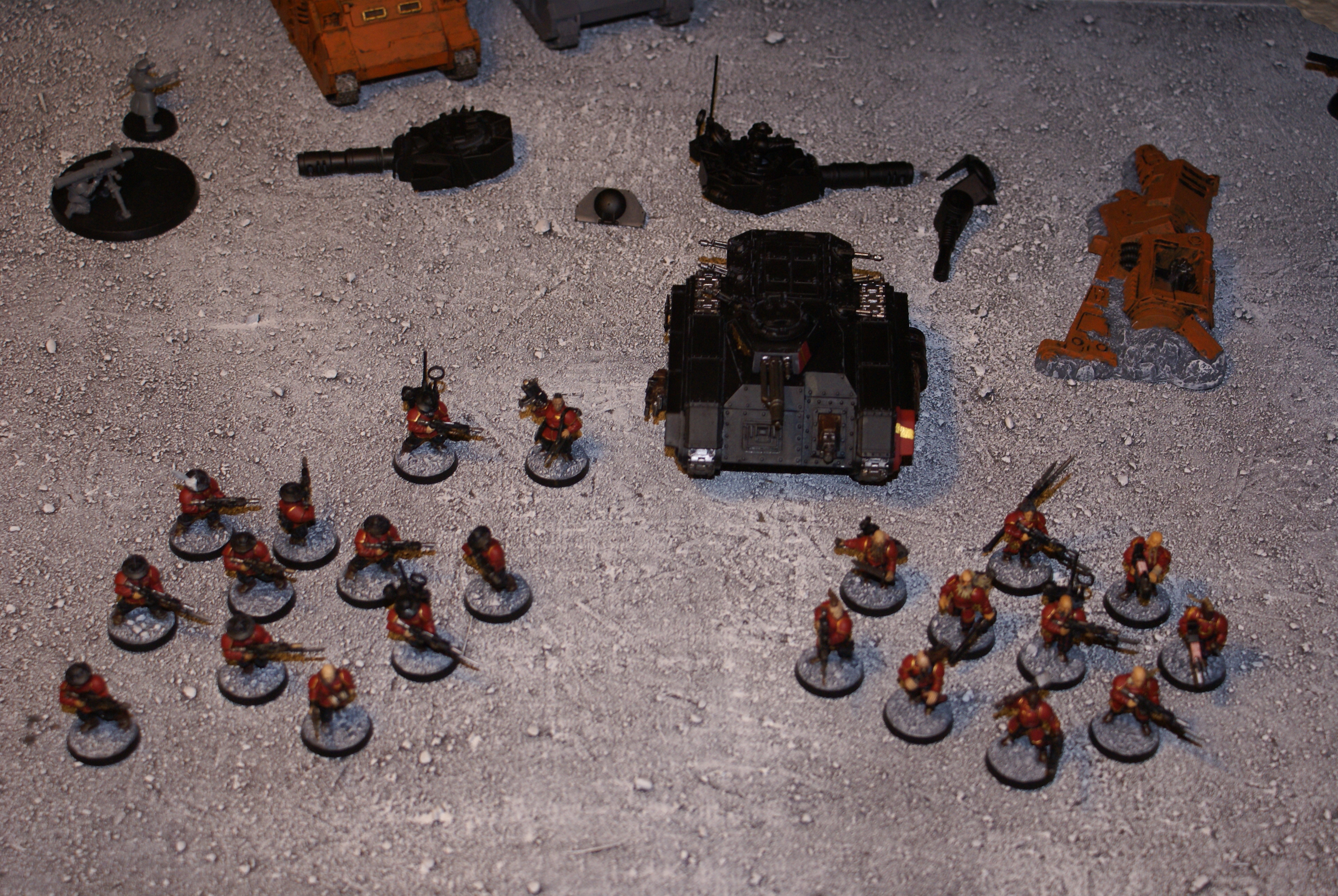 This is my first post here, and I am working on an imperial guard army, with minimal conversions, just switched the helmet. Some of my leaders and veterans will be converted a little more. Anyway I can not find a color scheme that I like to save my life. I have been bouncing around different ideas for months now, and I could really use some help. Any ideas would be greatly appreciated. I kind of like the red, but am not married to the idea. Thanks for the help. Here are some pics of what I have so far.