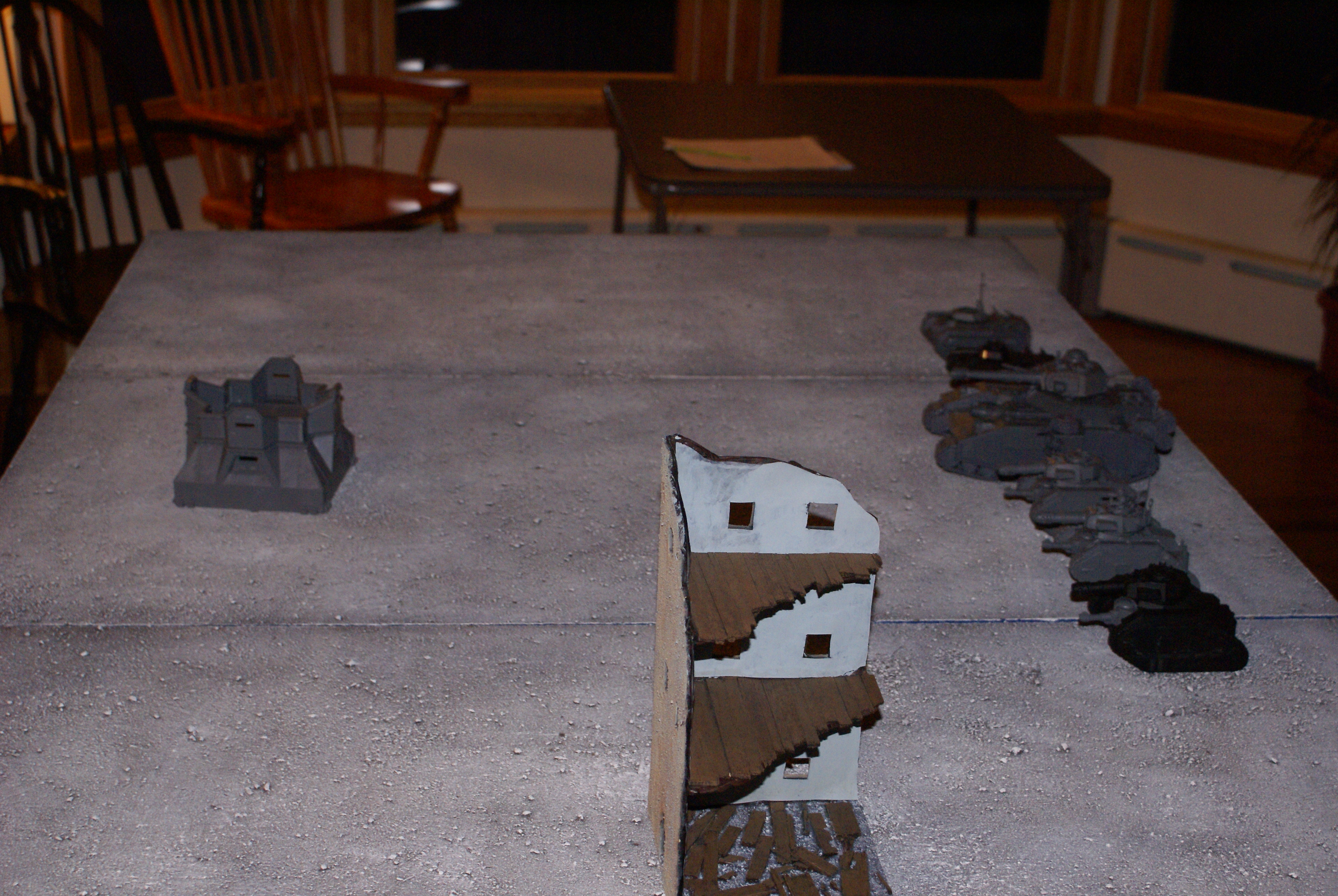 Sorry for the delay on this thread, but I became very distracted. I had a big apocalypse battle with my eldar to get ready for, including making the table and terrain. If you are interested, here are some pictures of that. We also played a small game of planet strike.