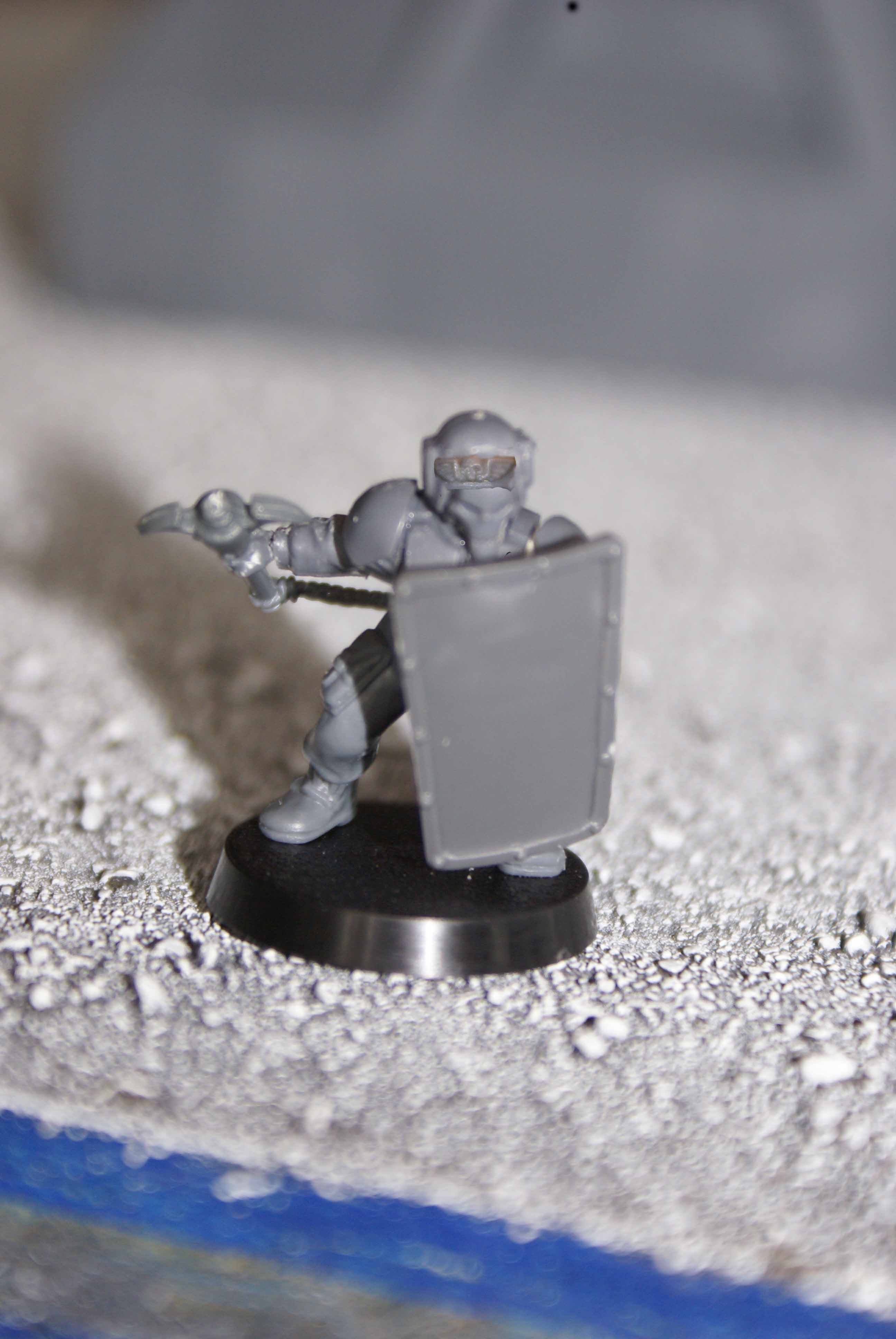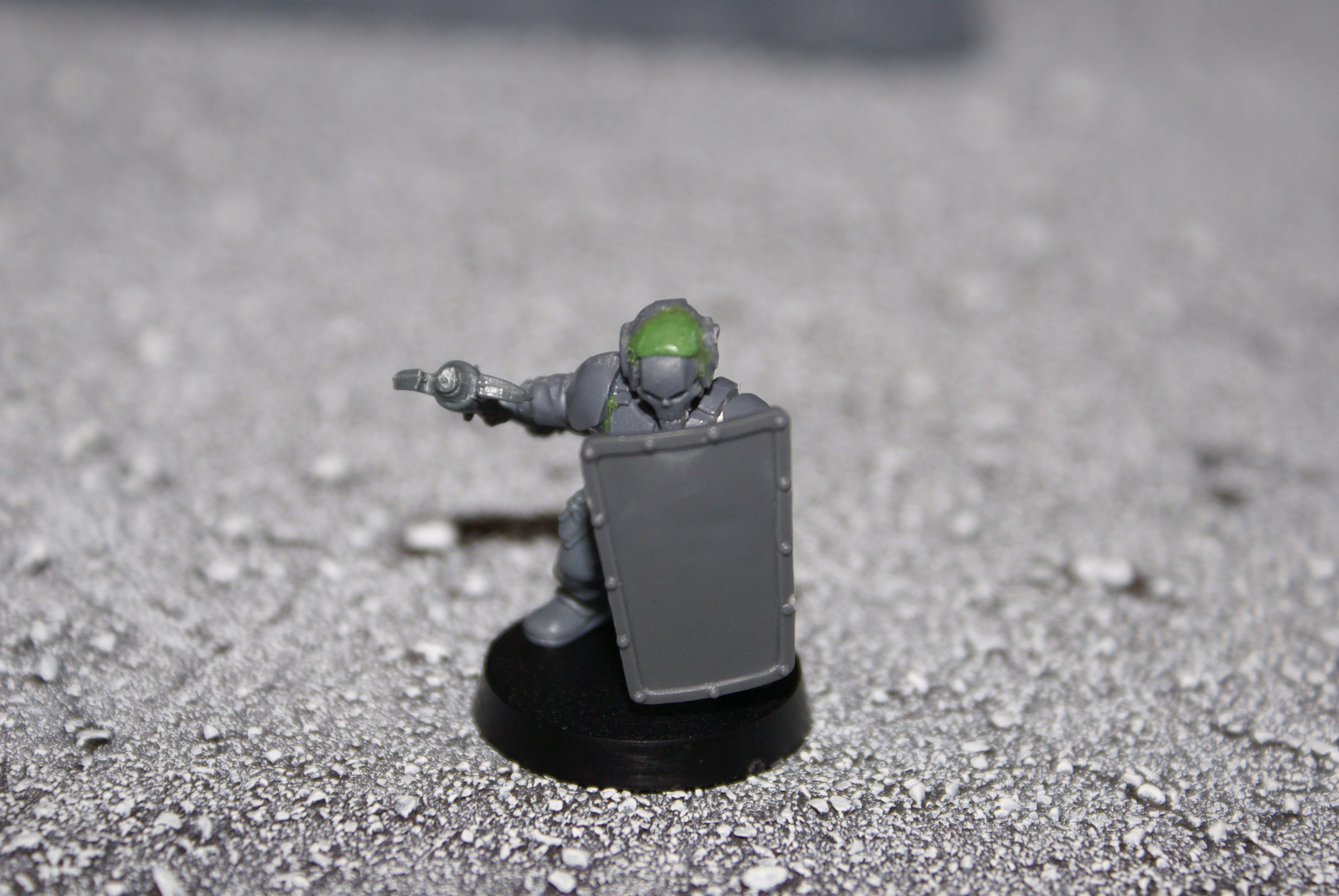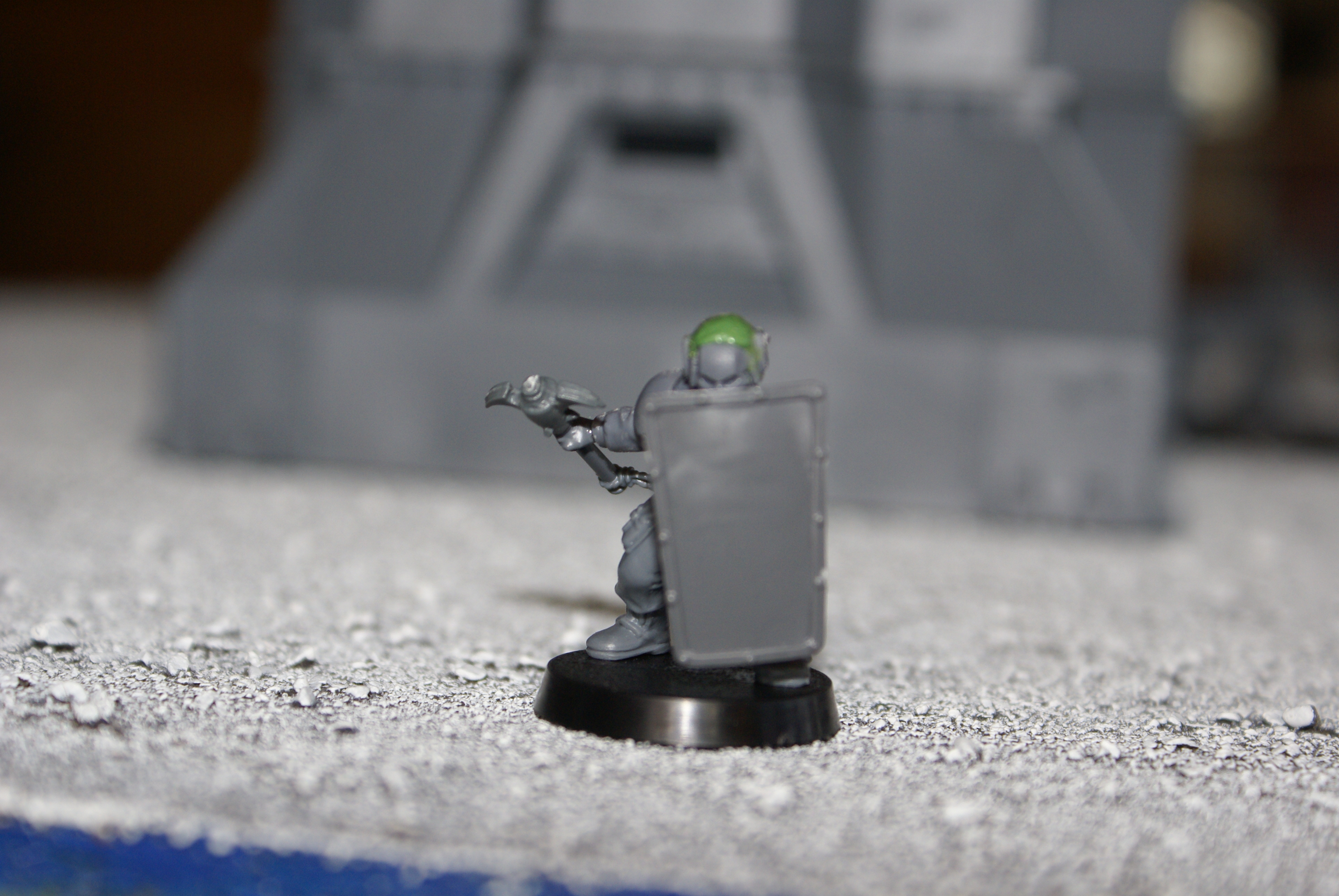 Thanks for all the great compliments everyone! I can't wait to keep working on these guys, I want to get the squad of five done soon. I am not looking forward to making up the rest of the squad though, they take a long time to convert. I have one more painted, but I do not have his shield arm finished. I really like how he is tucked in and looks like he is charging, so I am converting a shield arm to be tucked up closer to his body.