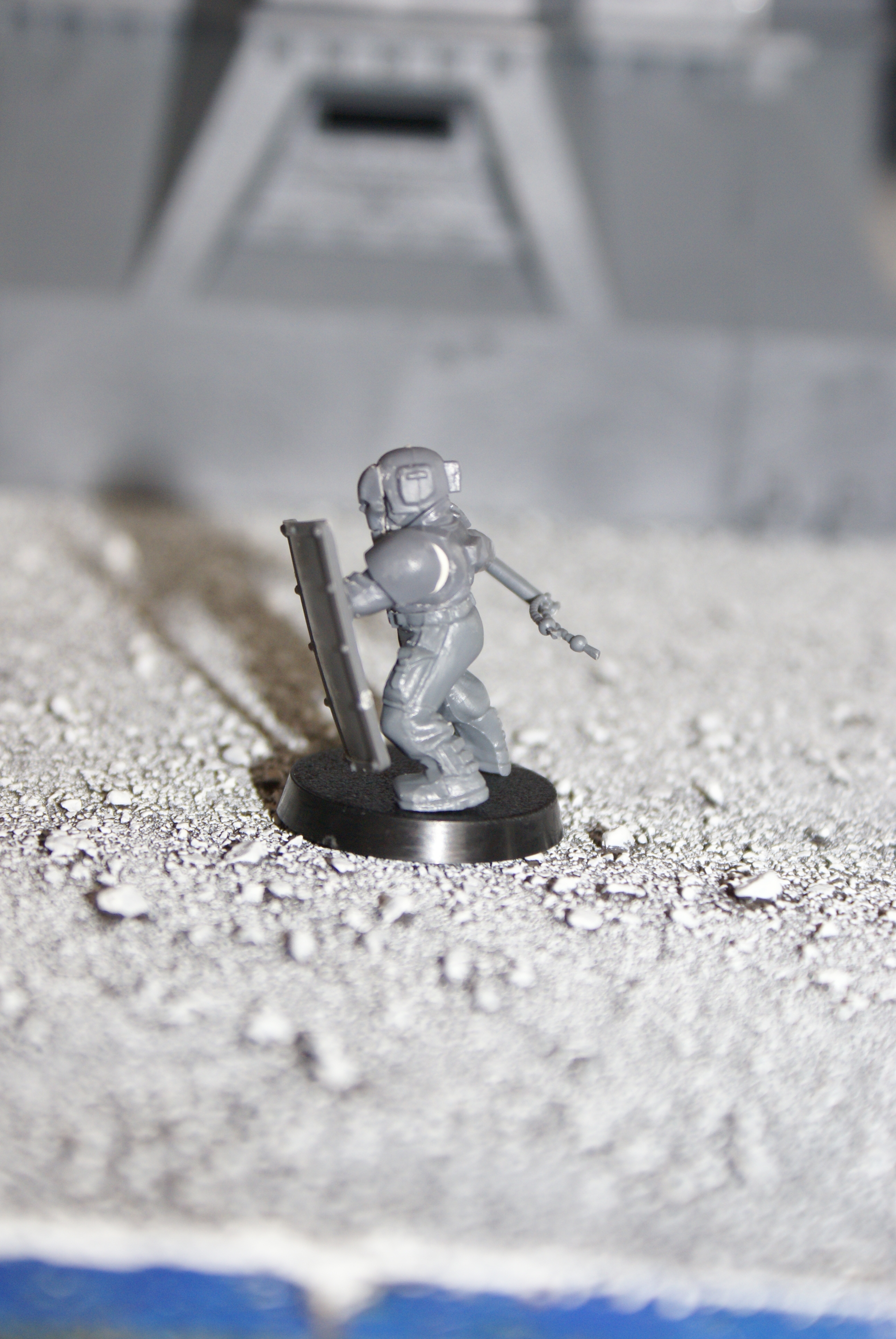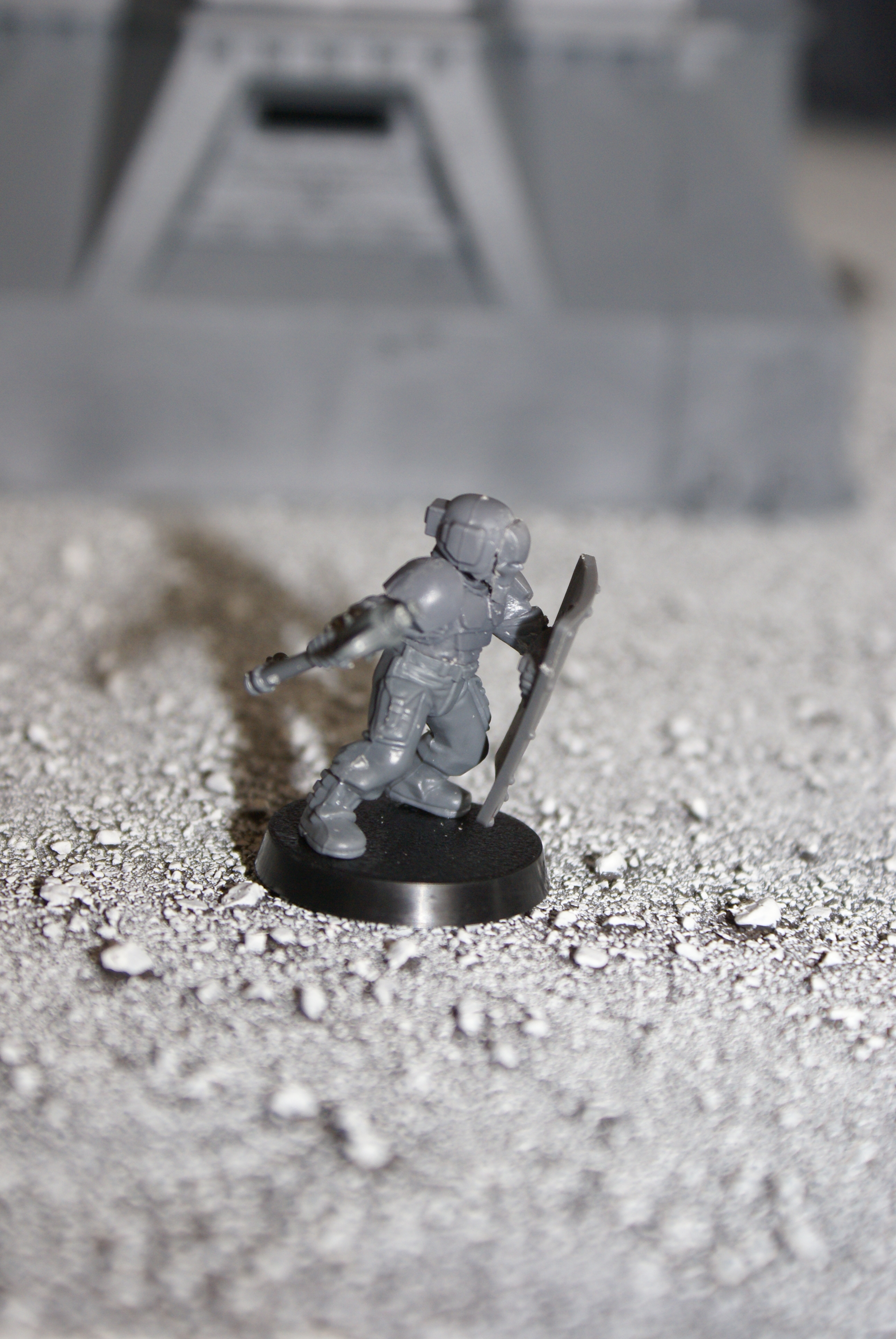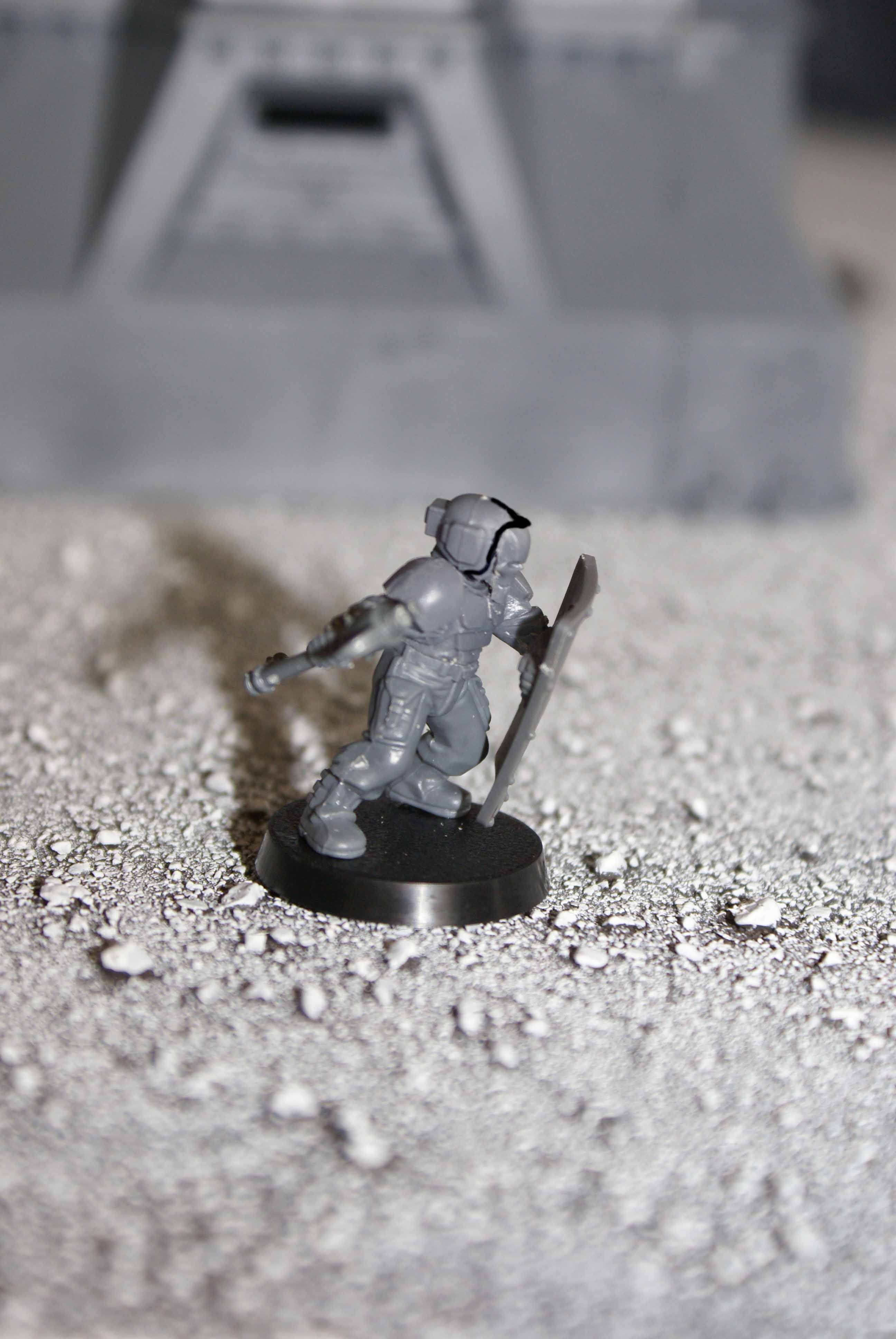 Thanks for all the great compliments everyone! I can't wait to keep working on these guys, I want to get the squad of five done soon. I am not looking forward to making up the rest of the squad though, they take a long time to convert. I have one more painted, but I do not have his shield arm finished. I really like how he is tucked in and looks like he is charging, so I am converting a shield arm to be tucked up closer to his body.