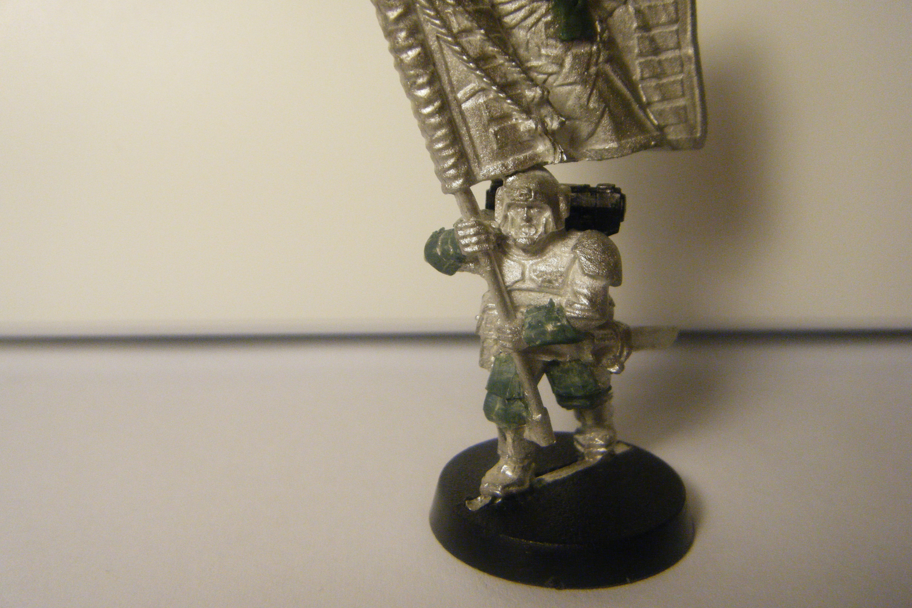 As that metal Cadian standard Bearer has never really pushed my buttons.I use two plastic Cadian and Catachan standards now for my Penal Legion looks much better and much more dynamic.