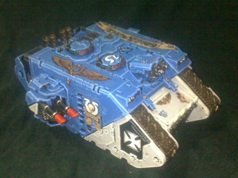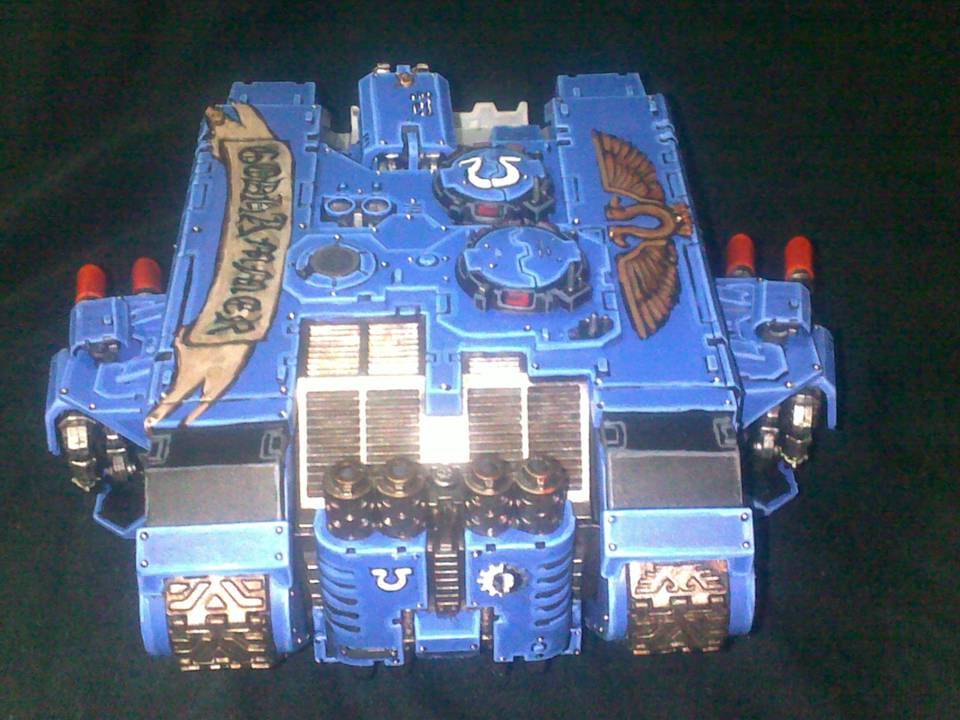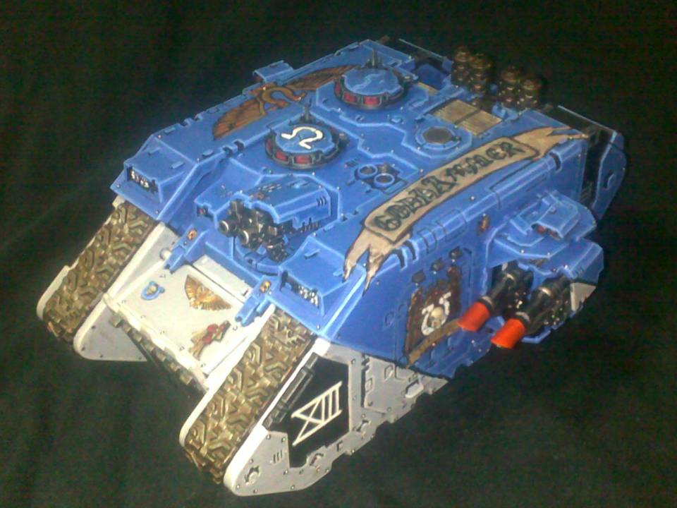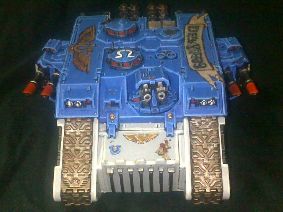 So, one of the things I always wanted to do was create a heavily converted Marneus Calgar Land Raider. Attached are some photos: