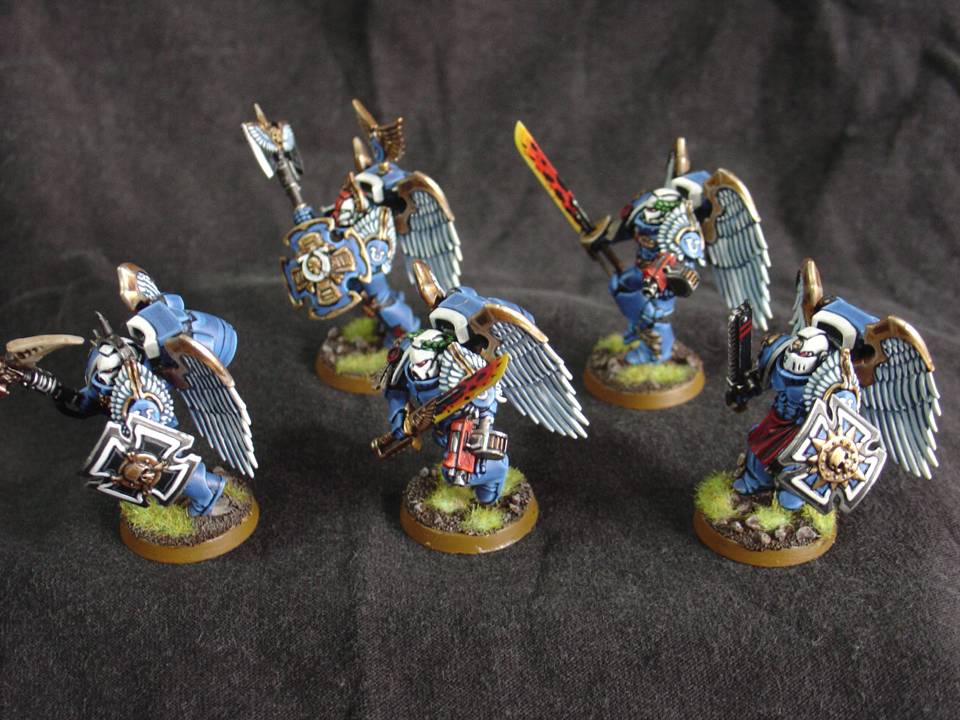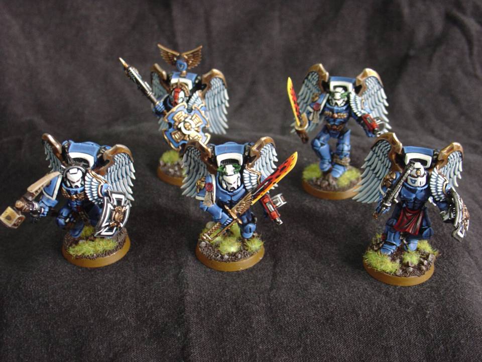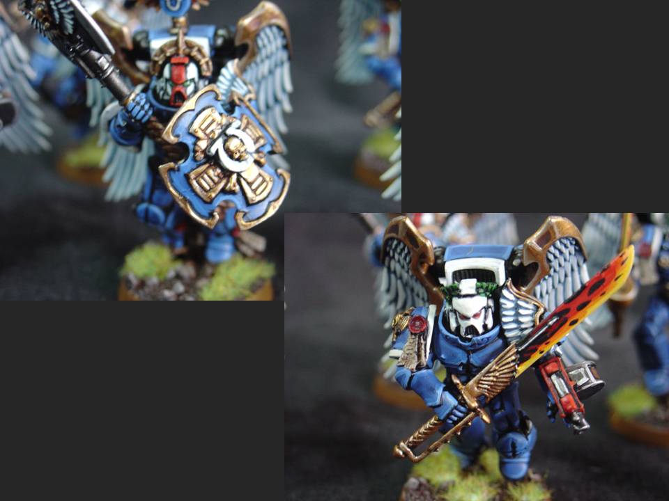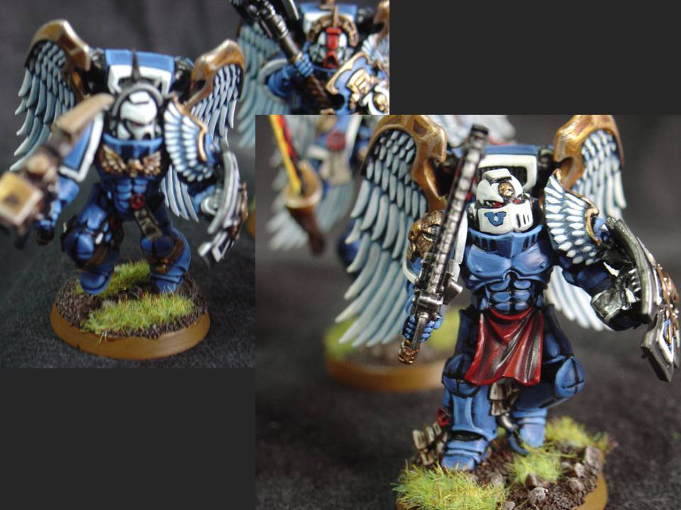 Though a jump pack/thunder hammer combo often looks ludicrous, I think you've succeeded in making that Vanguard sergeant look awesome; he's convincingly dynamic, not to mention badass in a way only Space Marines can pull off. Your painting style is well suited to the Ultramarines, as well; the whole army is a pleasure to look at.