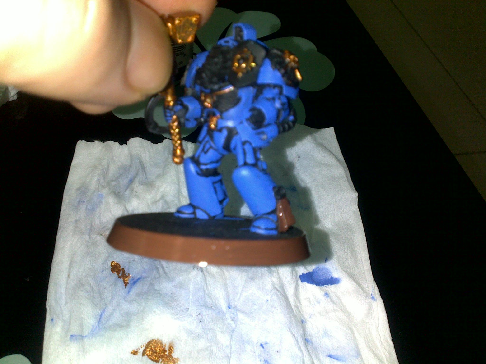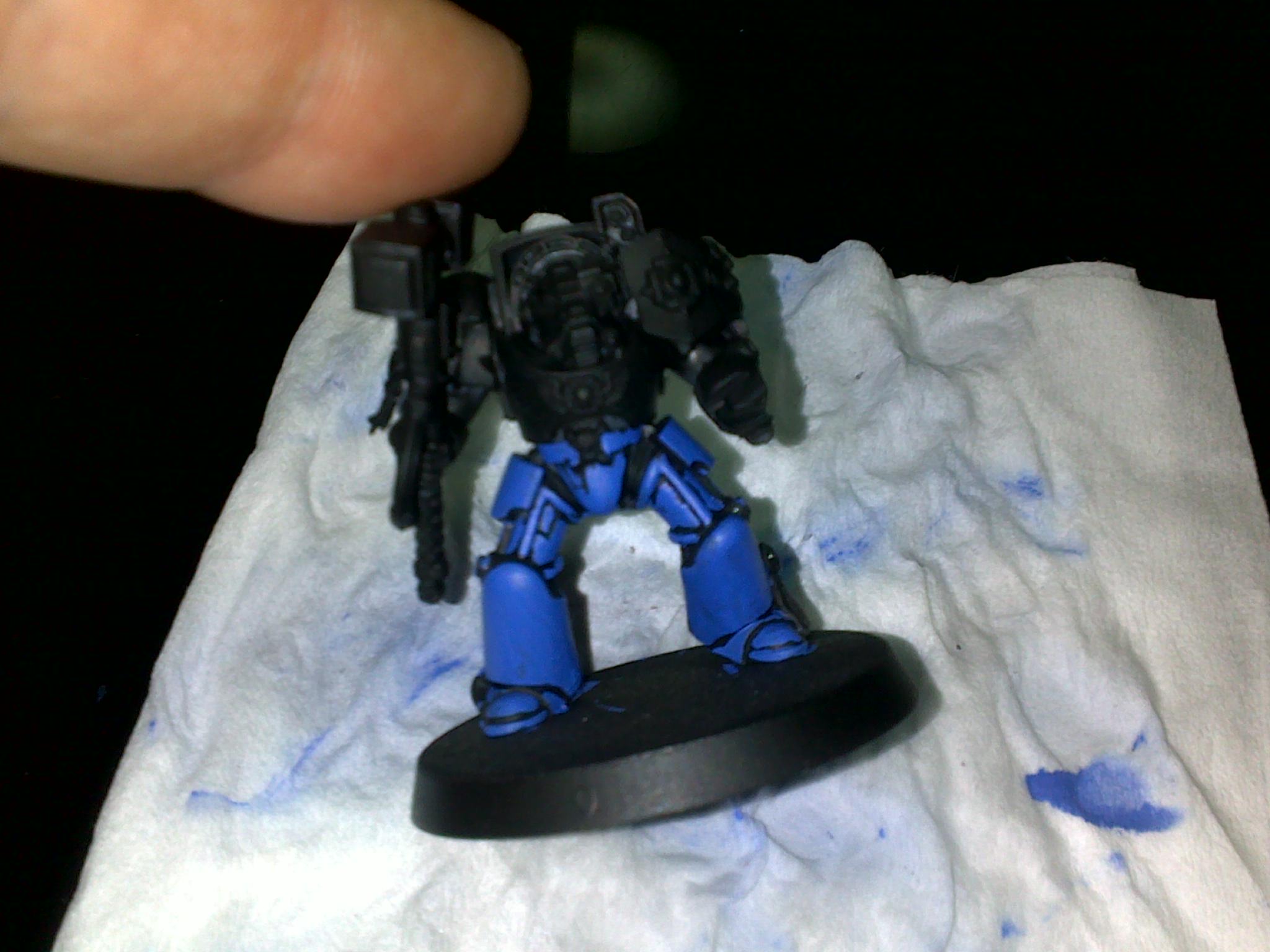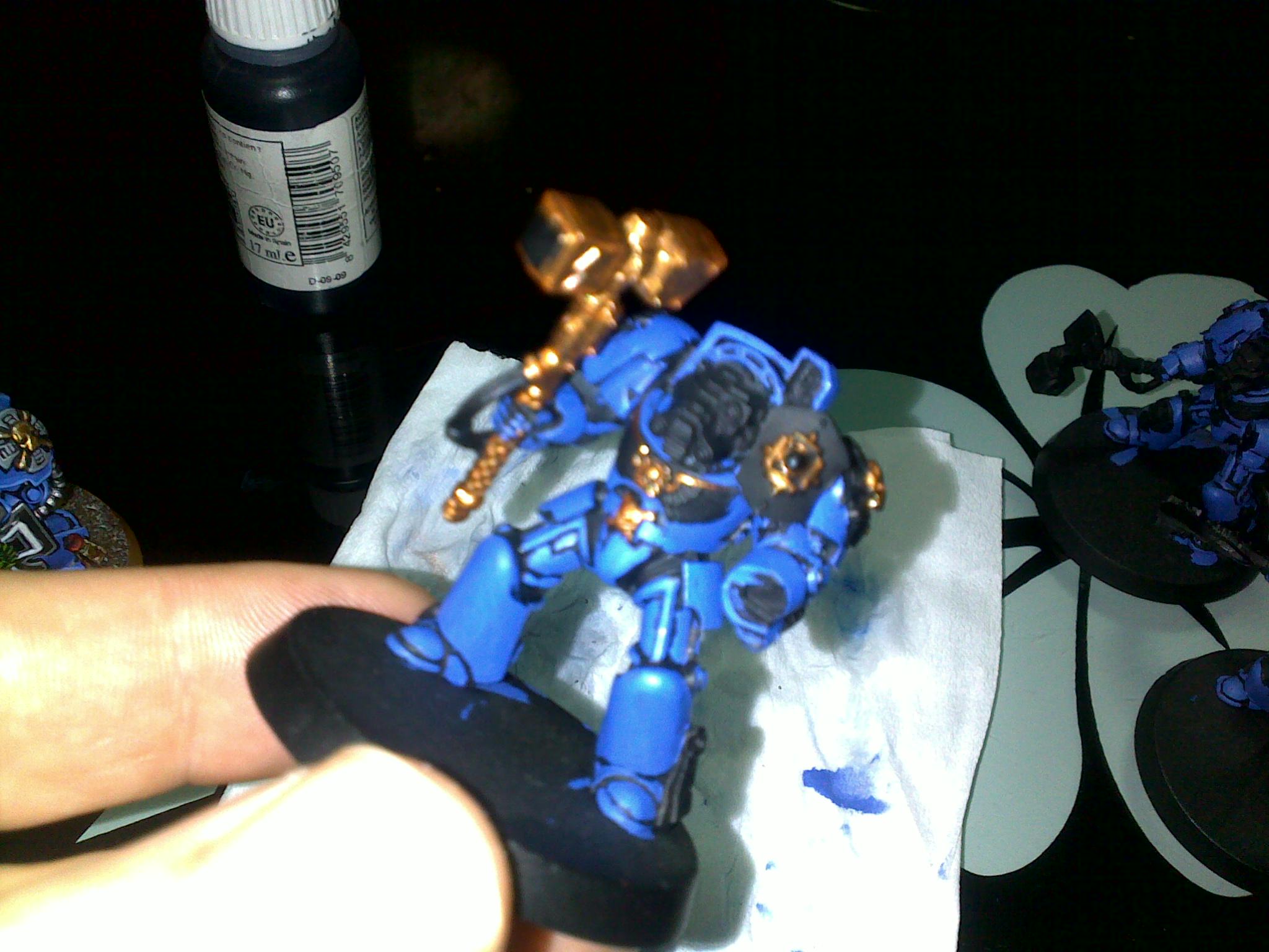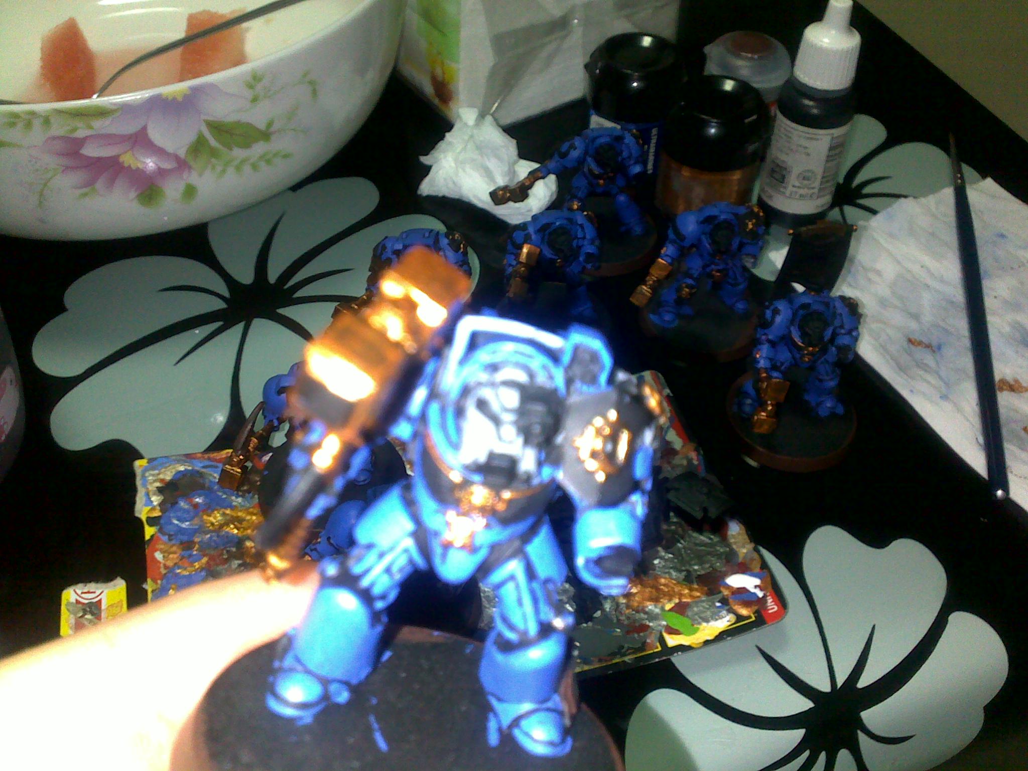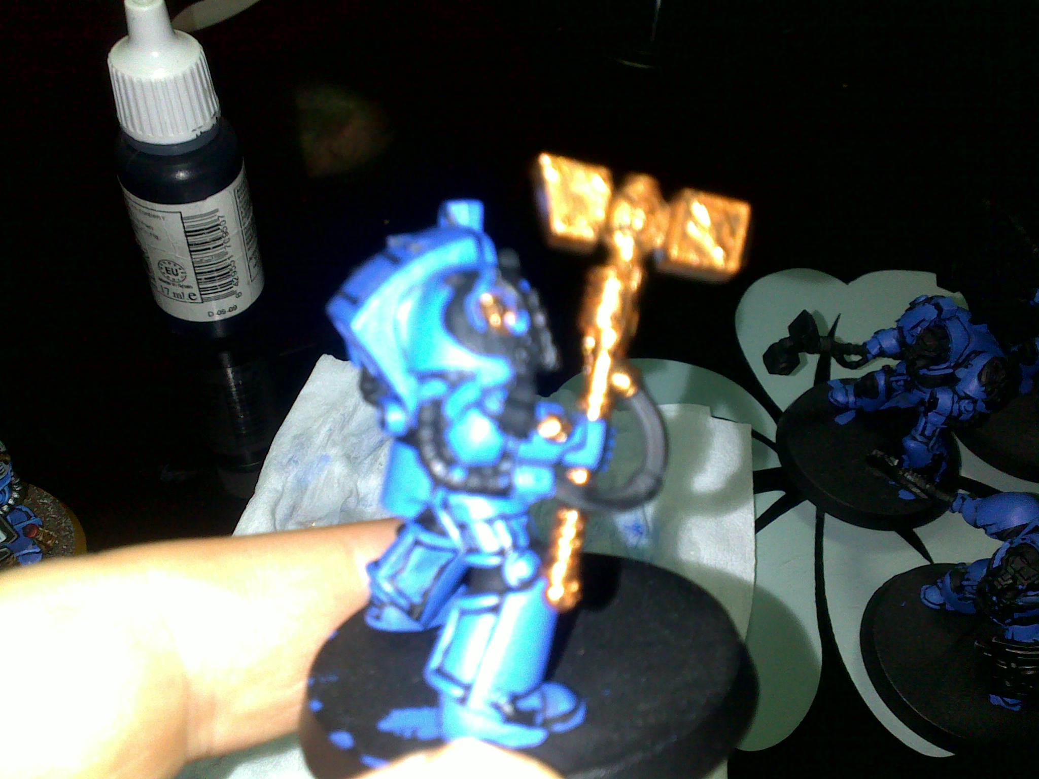I would like to thank Smurfmaster for putting up on his blog how he paints the Ultramarines Chapter Symbol, I used his technique on these terminators.