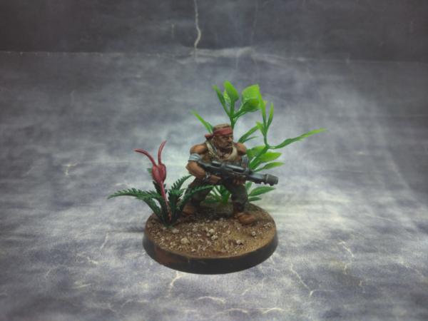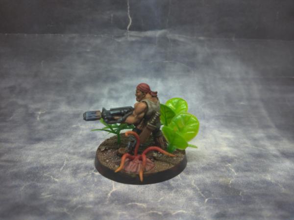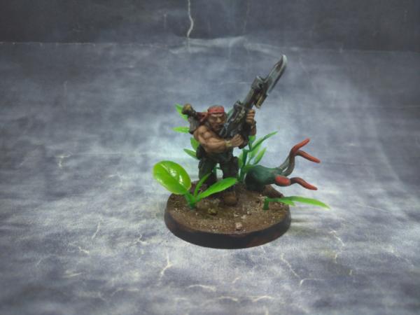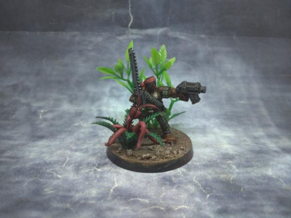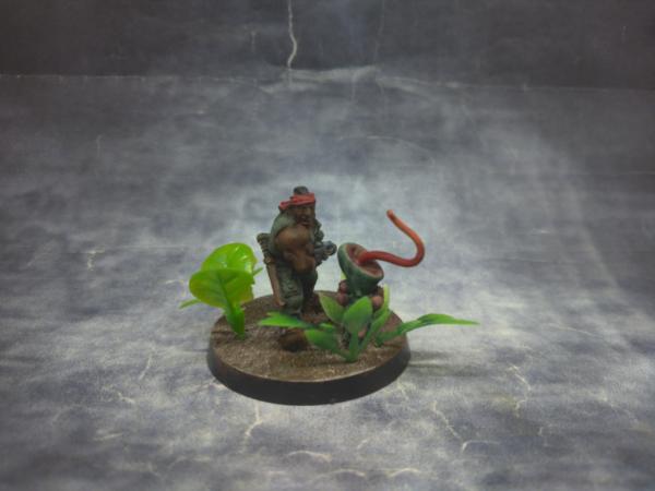 When painting Catachan Jungle Fighters, you have to pay homage to Bill Duke and Carl Weathers. The Pitcher Plant with the barnacles is from a plastic coconut tree that I cannibalized for a couple of the other plants.