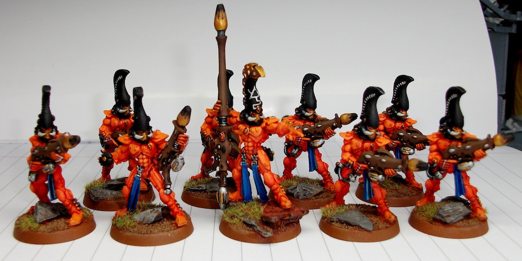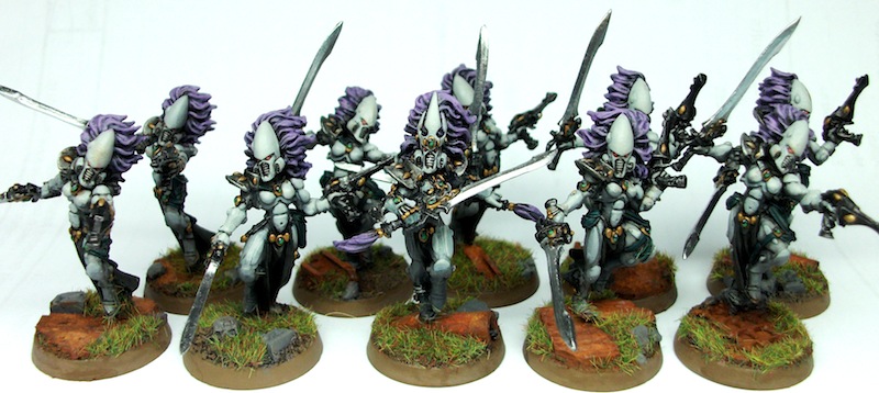 Been awhile since I checked this blog. Fantastic progress. Still looking forward to a full army shot. Very clean work and the metallics on the Banshees were very well done. It's a great blog to follow.