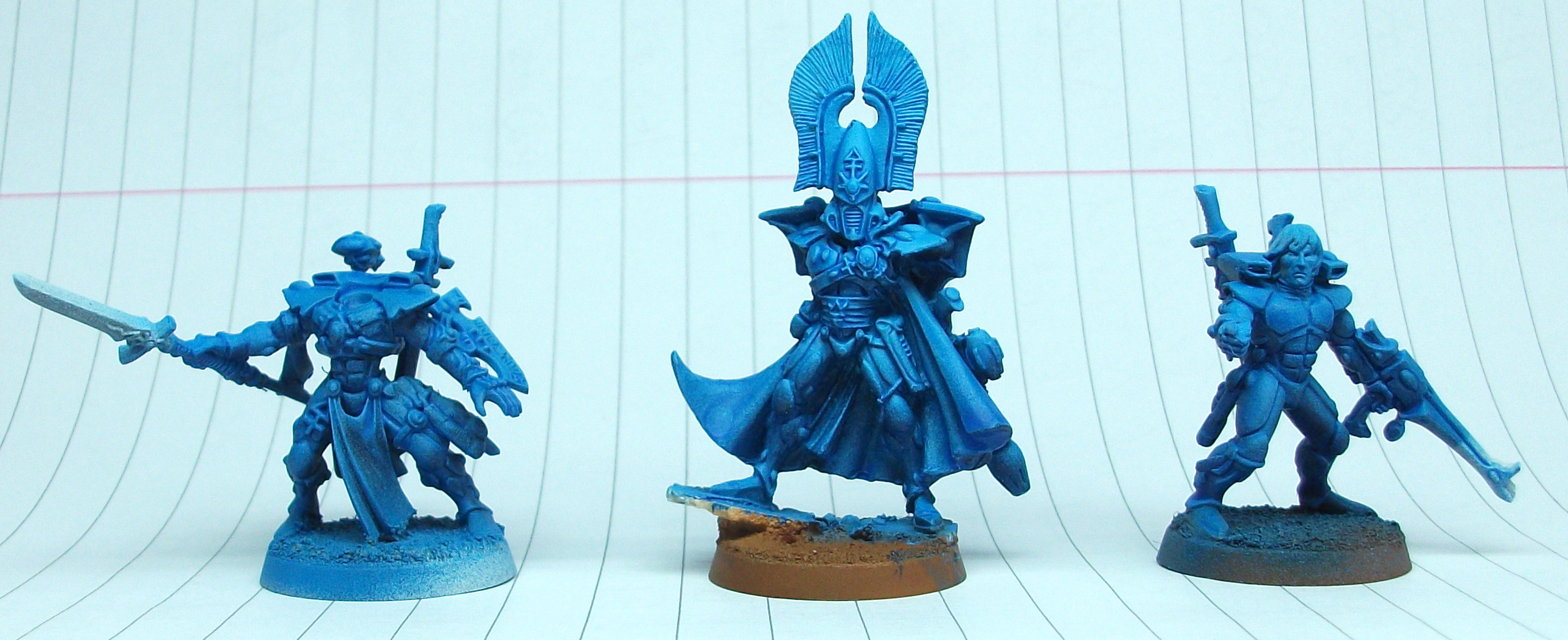 Thats the guardians basecoated now then its onto shading/highlighting the blue. I've primed the helmets seperately so I can paint them with having to deal with overspray. I'll have a yellow contrasting panel on the 'face' part of the helmet with the remainder in blue.