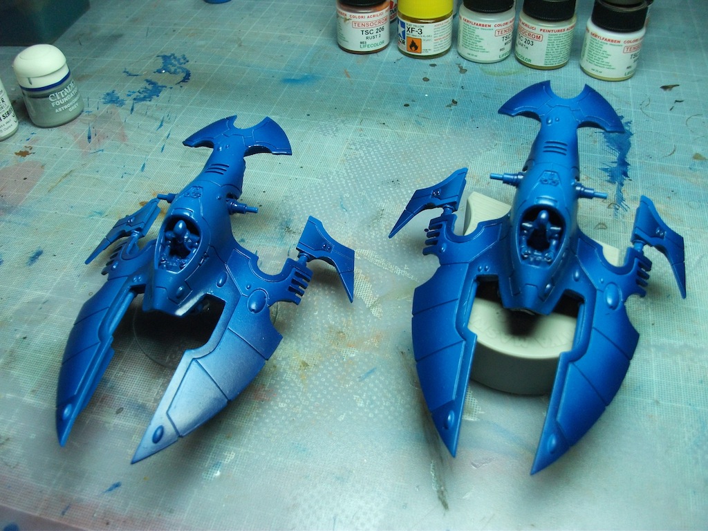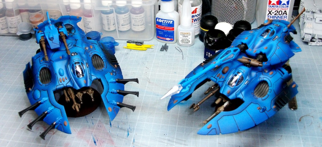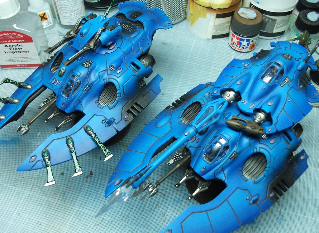 I reckon they are just as quick as the Wave Serpents to paint. I used an airbrush even for the metallic undersides.