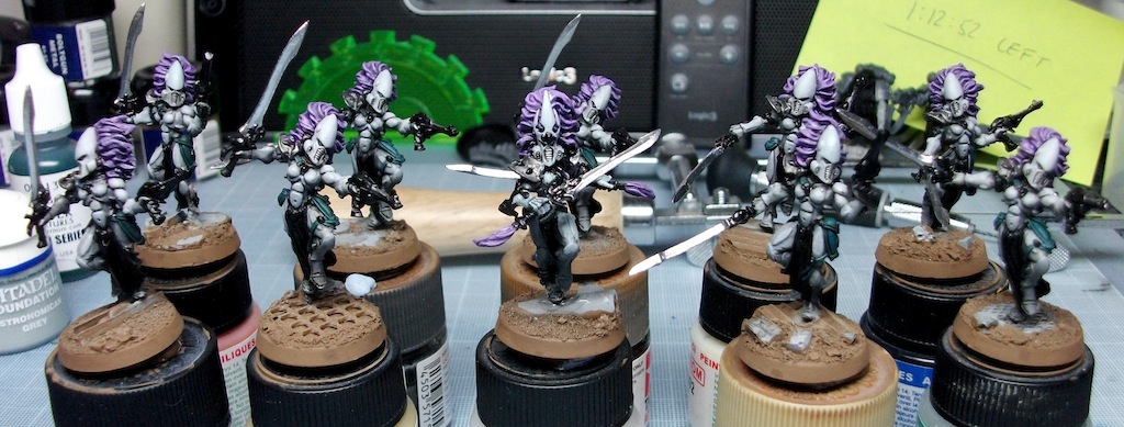 The Dark Eldar have been put on hold for now but I managed to do a fair bit of the mundane basecoats on them (metallics and bases etc.) I'm still trying to work out what kind of list i want to do with these guys......