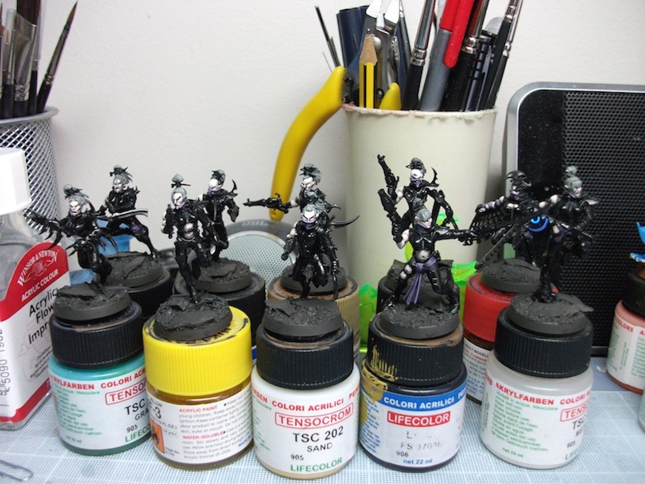 The neons and some of the washes I'll be doing on the vehicles will be done in oil paints.