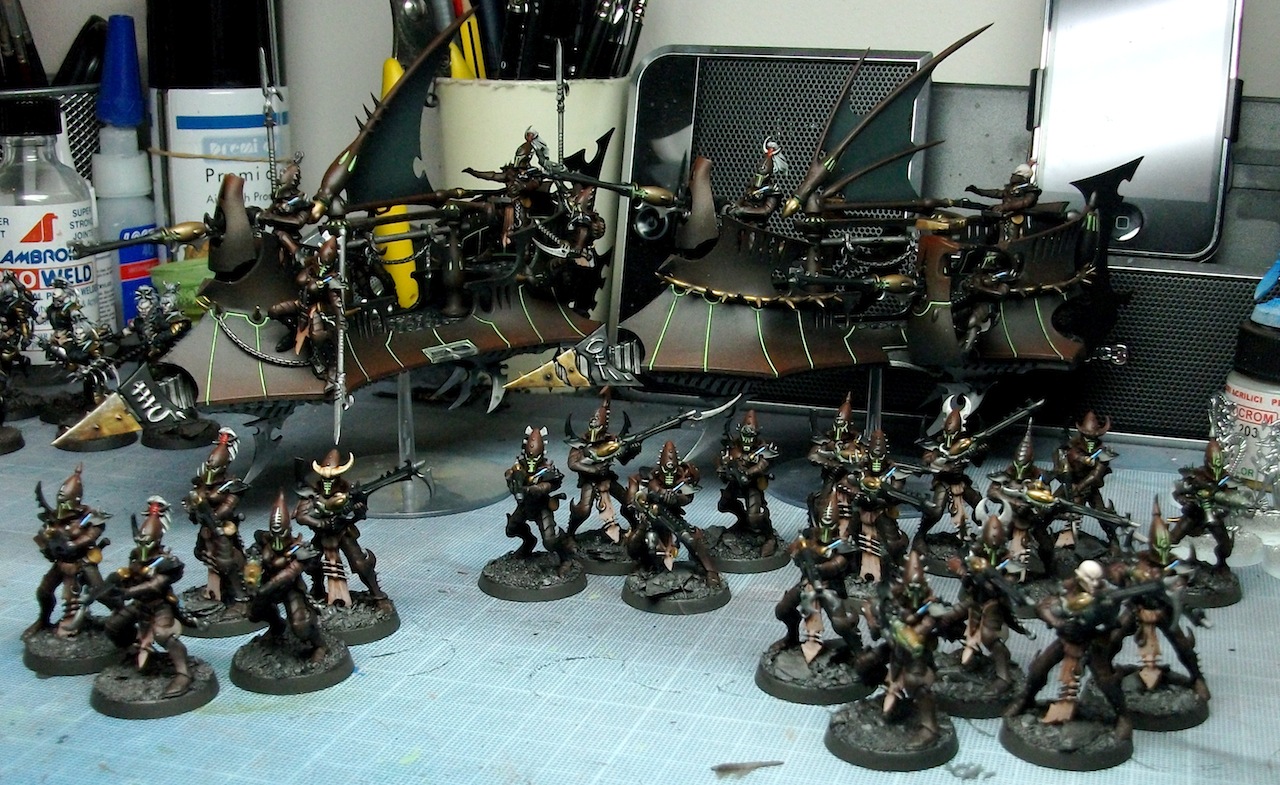 Thats me now finished a DE Ravager, Raider, 10 man Warrior squad with splinter cannon & shredder and 2 5 man squads with blasters.