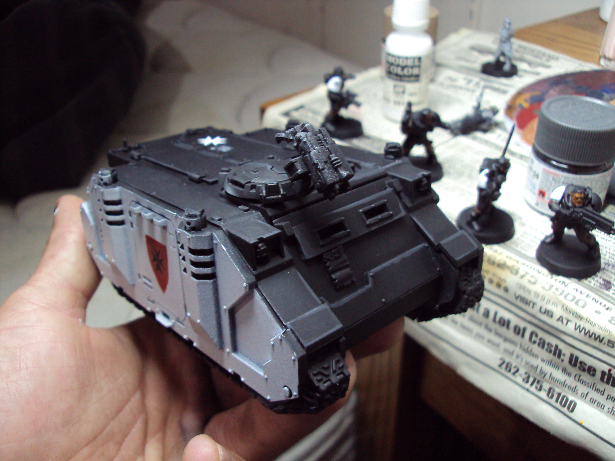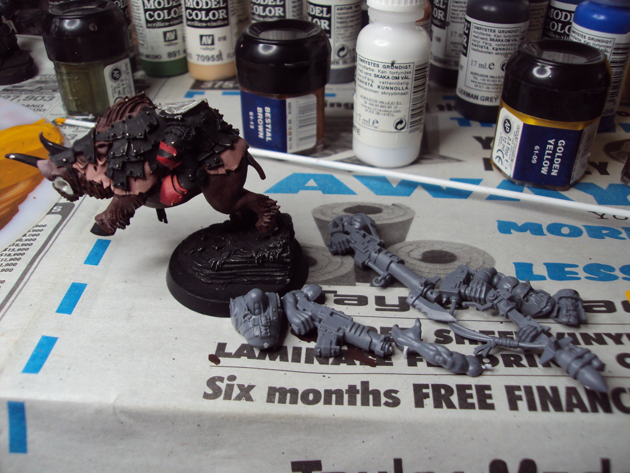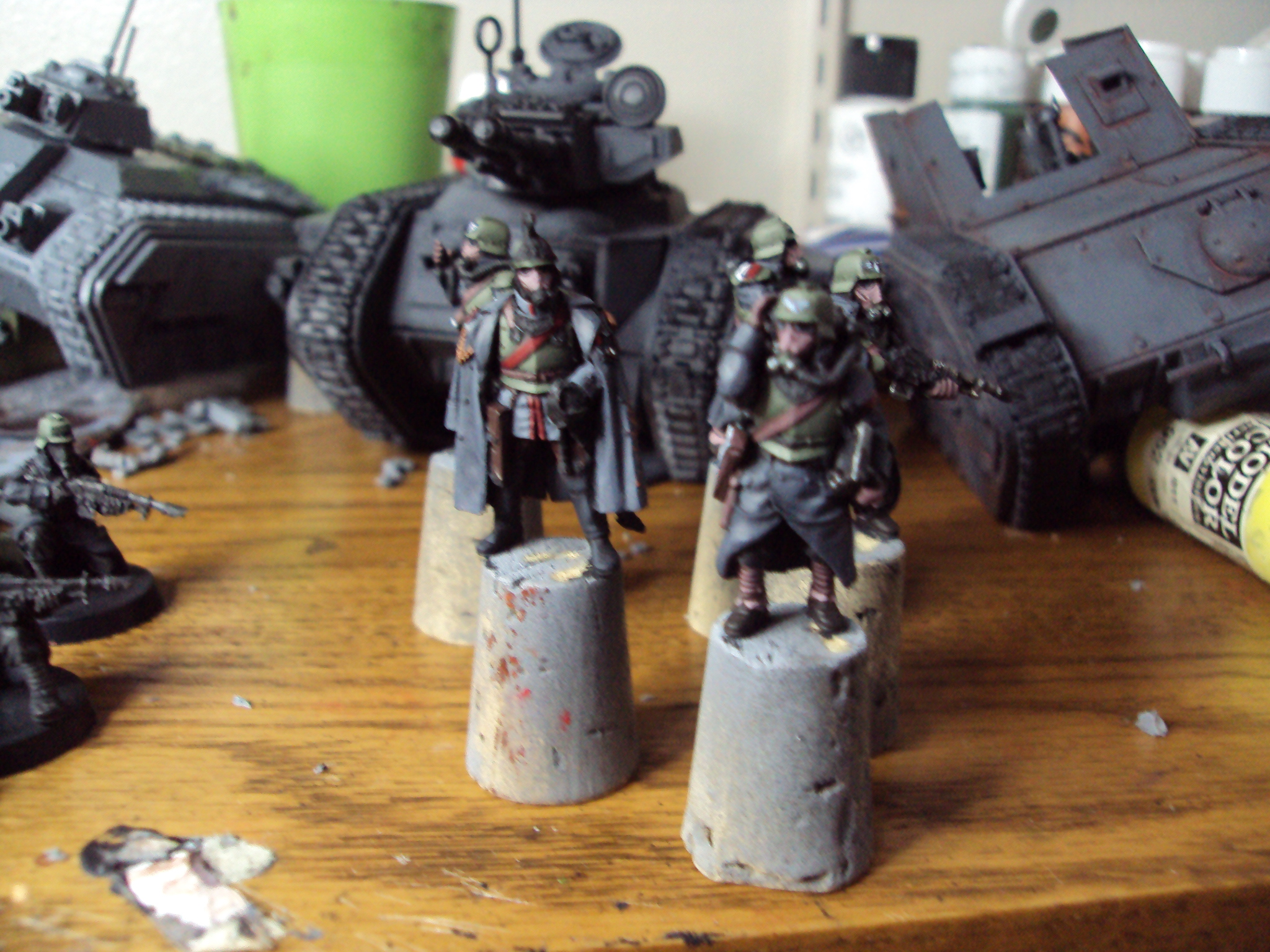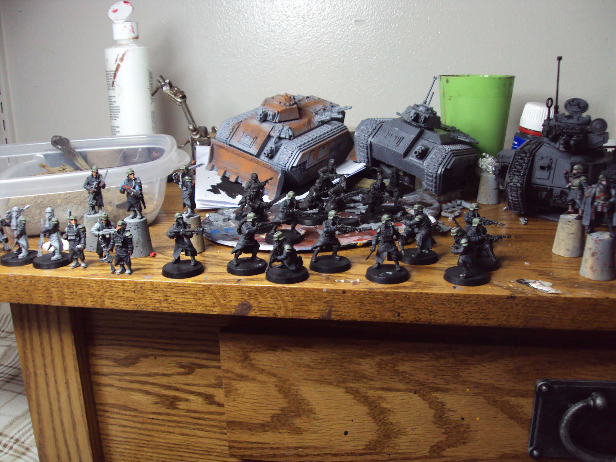 Please dont mind the chimera, and the leman russ, they are in very early stages of paint thus far. But the Russ is converted into an exterminator.