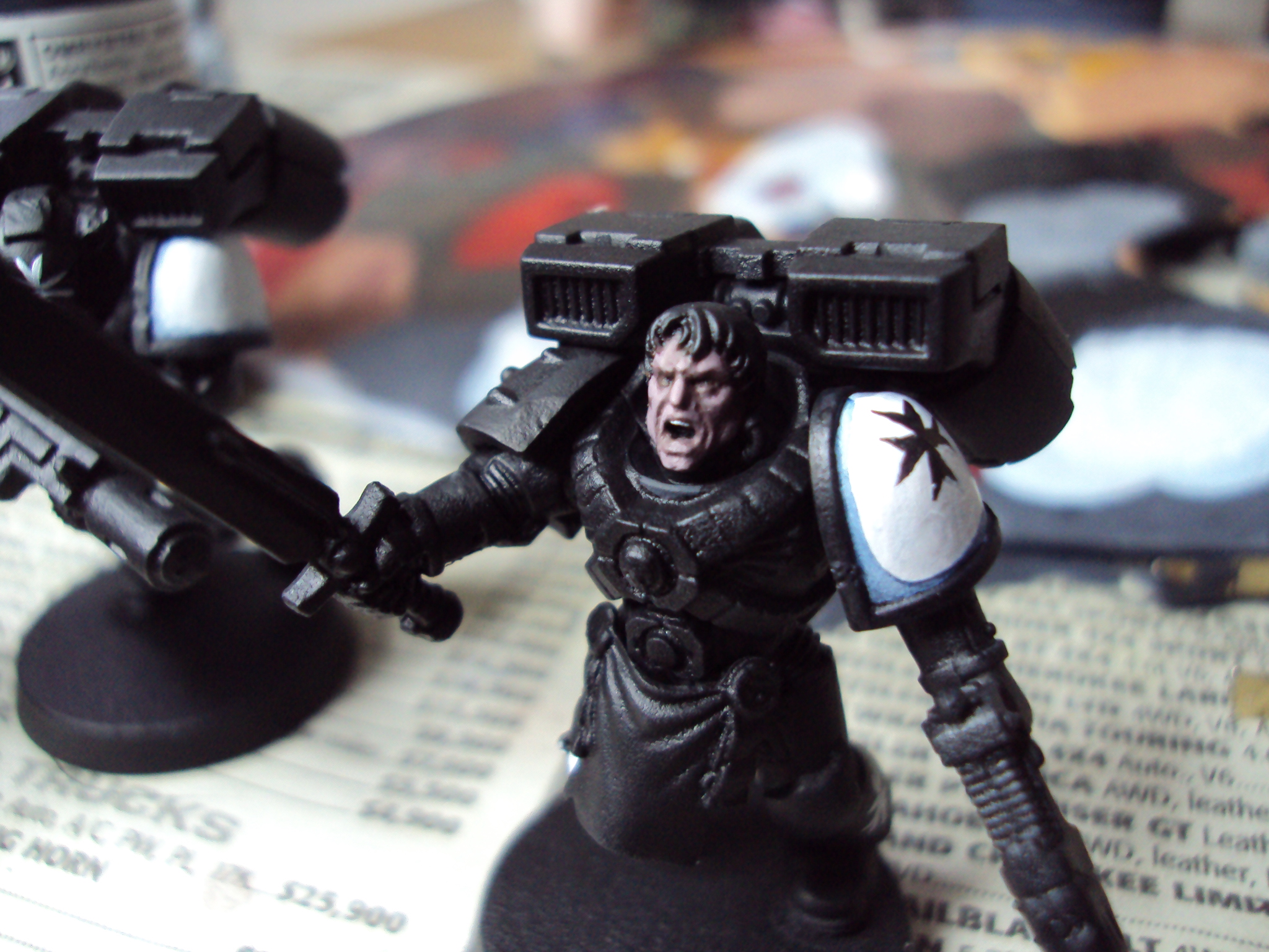Thanks guys. I have to refine some of the freehanding. Some spots need to be tightened up. I started working on an Emperors champion conversion. Many bitz to choose from. I also am doing a marshal/chaplain in terminator armor, just to have a choice for a proper HQ choice. In a gaming sense I hate to load an army with HQ in risk of losing victory points should they be killed.