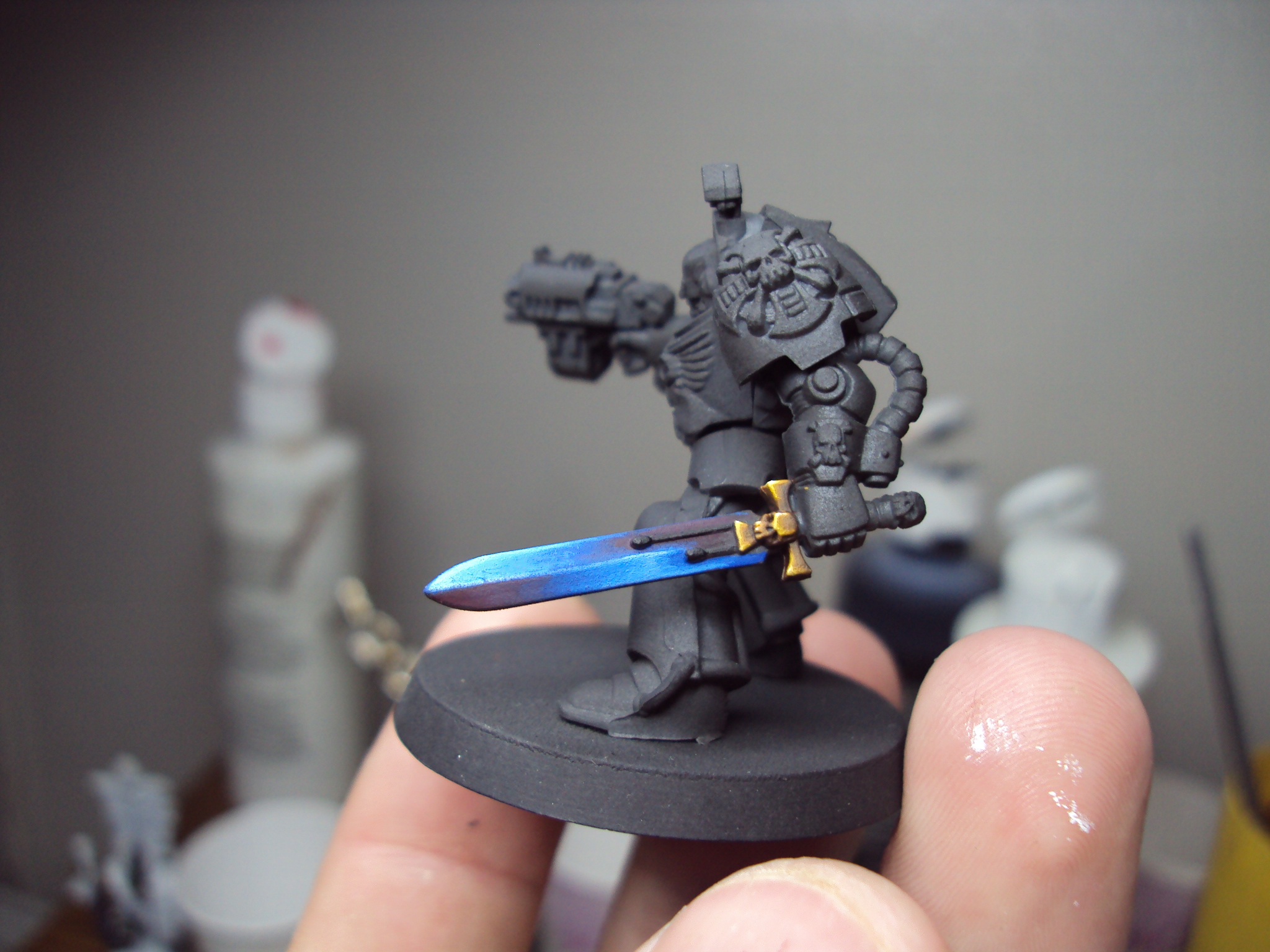 Sword looks great, I usually just paint mine mordian blue and pick out the power cords  . For your BT I'd reccomend Grimaldus and his retinue as an HQ, hes great in CC and if you take all 3 servitors you pretty much have 6 wounds with his ability. Very good commander indeed. Great work and, could I see a tutorial for your freehand? I need to get some markings on my Templars' shoulders