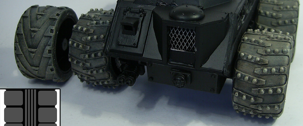 But first as you all know I’ve been having some troubles with the rubber wheels I originally brought for the doom-vees; such as removing the mould lines and dry brushing the dust on them. I eventually came up with a alternative solution which was to replace the rubber wheels with armoured plates, just like the old Ork battlewagons.