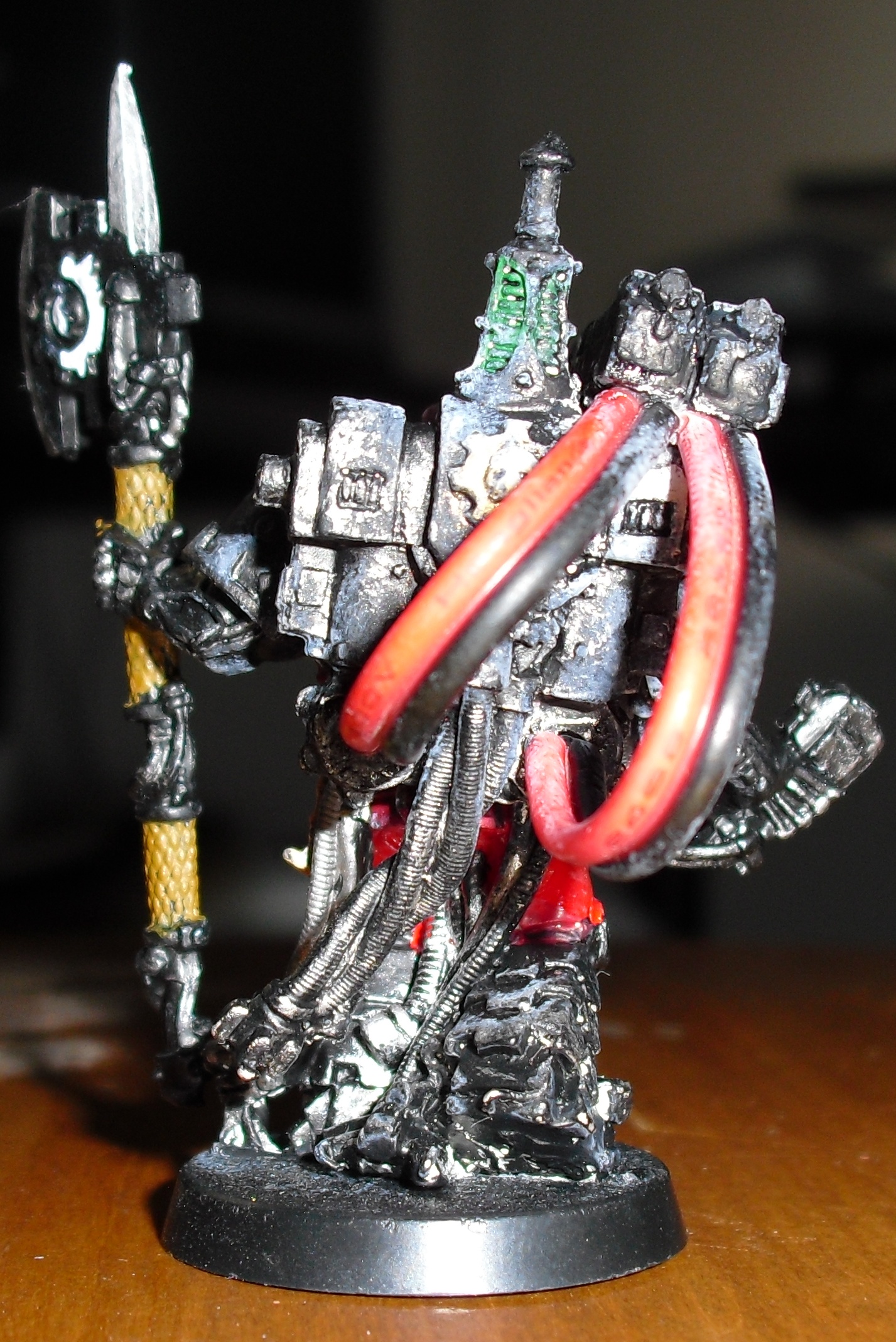 Here is my favorite thus far, my MotF with converted conversion beamer (tehe) that I did recently using the techmarine from the techmarine with servitors set, a couple of plasma rifles, a hunter killer missile, and some old speaker wire.