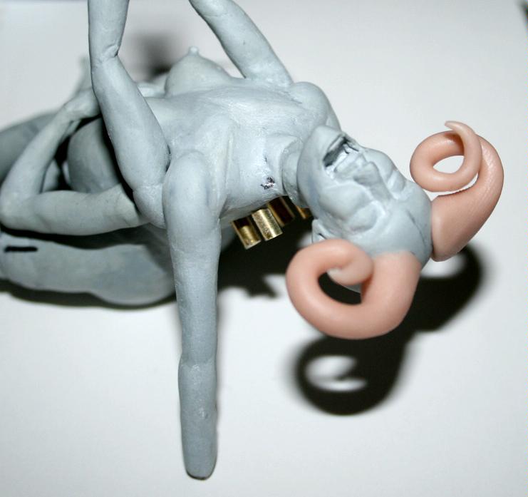 Oh and if you did go with the baby idea, nothing would look mor disturbing than if a pair of tiny chubby baby arms were holding the gun protuding from the babies mouth....kinda gives me the creeps thinking about it actually.
