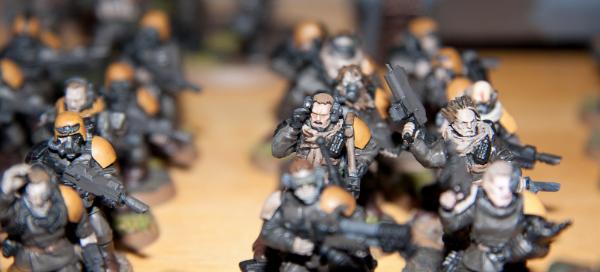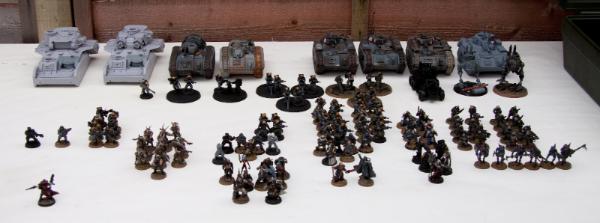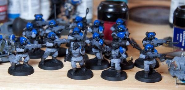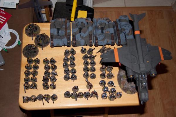 My apologies to everyone for the long silence here, I've been busy working on an inquisitor for Panic's Pimp My Sorcerer competition and relearning to paint. My wife is away, so I've been clearing out my office and decided to see what stuff I've actually got for my Guard so I can calculate which trays I need for a P.A.C.K Air case to store them all in.
