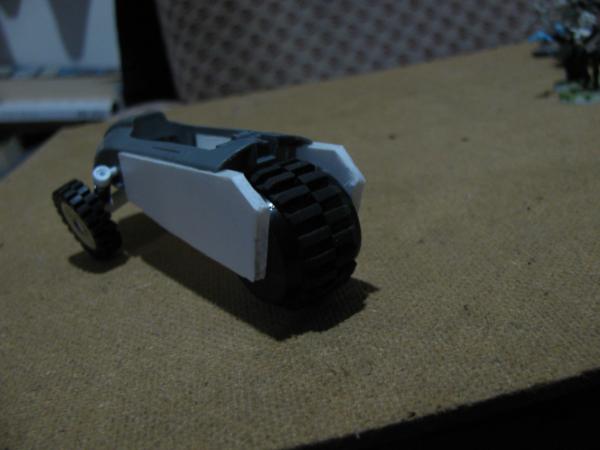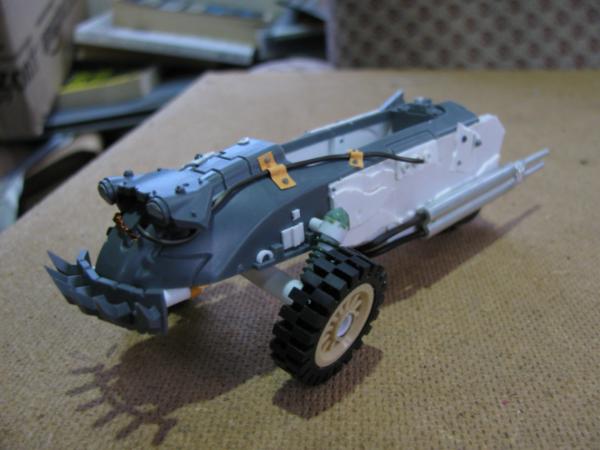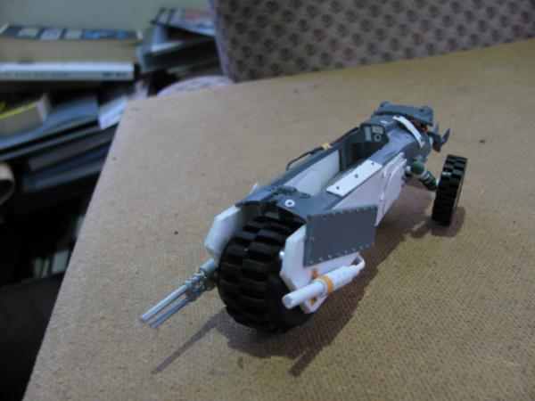Arakasi - Thanks, I'd been thinking a splash of colour was needed to liven the thread up a bit. Now we'll return to monochrome service for a while Well, you know when you've seen one suspension spring you've seen them all Once I'd switched out the back wheels for the single I felt it had a more rugged feel to it rather than just speedy, so it was a natural really. My meks prefered a simplified two axle system though. And you'll be pleased to hear it's starting to lose some of those clean lines