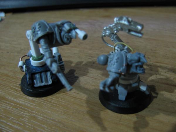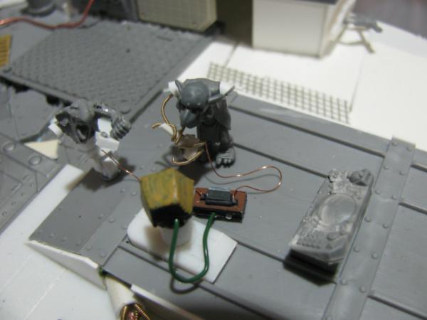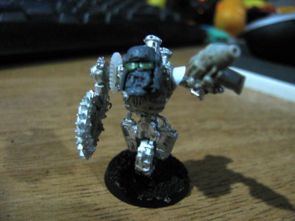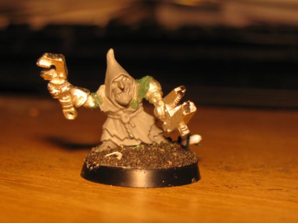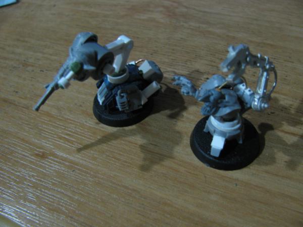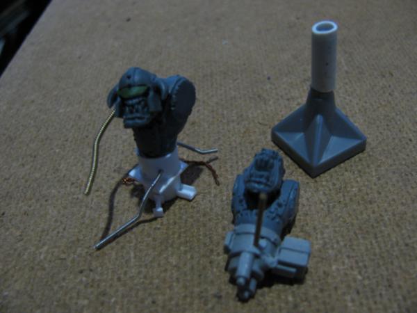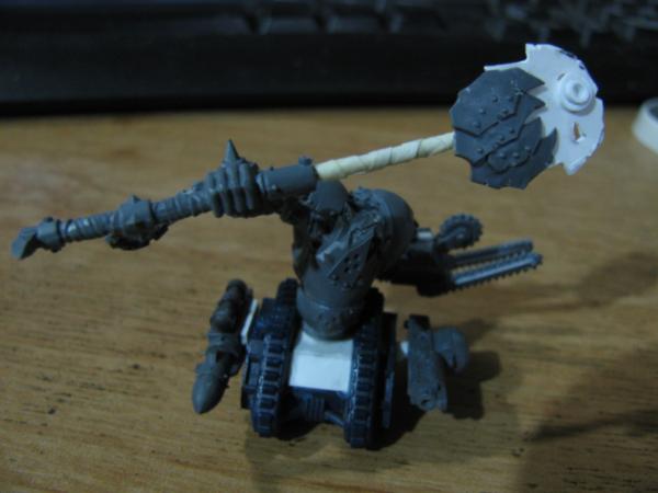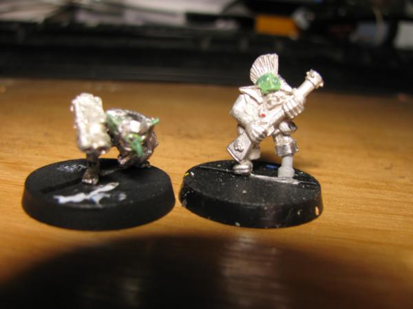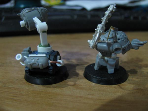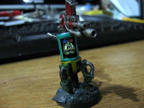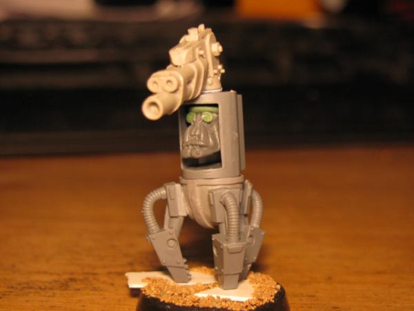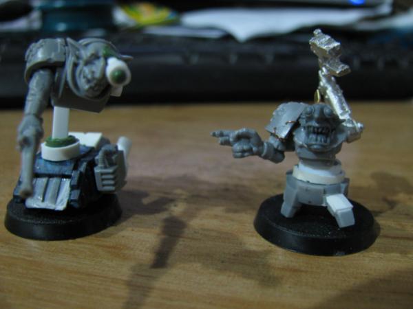 The walker-tekky has tied his pad around his shoulder and sports a knock-off tech-marine pack, his missing arm will probably be organic, possibly holding an orky auspex. Not sure about the arm on the cherry-pikka grot, they'll probably both be bionik. Actually the pad will probably get 2-3 mekka-dendrits waving from it, and some kind of measuring device or clamp on the other, want to avoid metal bits for that as I think it'll tip with any weight on that side Have an idea for a hovering/flying type tekky that might try and get a secondment too, we'll see...