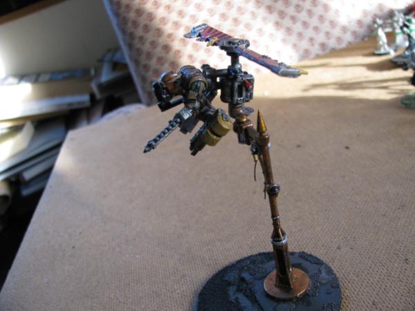 The walker guy has the best face , love the fact he is pointing to his mate , saying ha i have two arms and you have one! who inccidntly looks like he is pinting a miniature or has just spotted a carpet monster long lost bit ! fuel tank is a nice touch matey , i think the hole in his head is their for a reason , who would fly one of those things with a full noggin!
