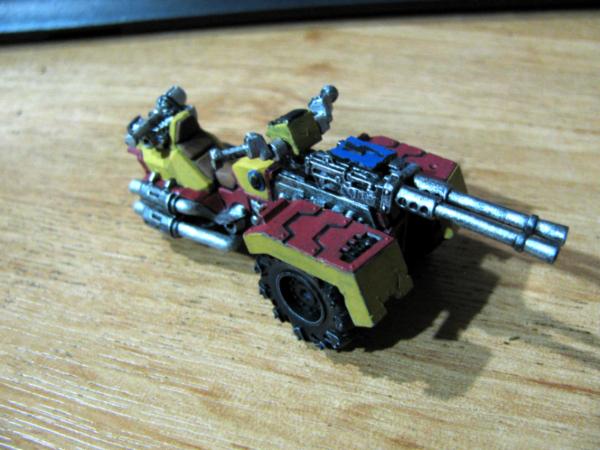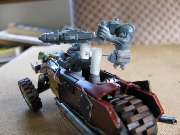 I like the colours on the buggy, and the gunner is looking good - maybe add some servitor-like 'upgrades'.
