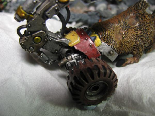 Damn, you found my secret out, now'll I'll have to despatch the grot-kopta's to keep you quiet. Actually the real issue with the joystick was getting the mekka-dendrits to hold it reasonably well. That was a right royal pain, and the reason the mono-wheeled guy isn't actually holding his. He'll be getting a bionik arm instead now.