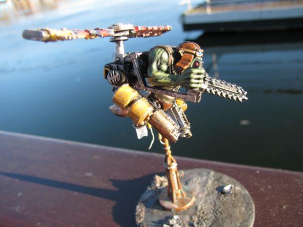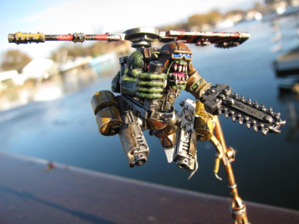 At this, those orks who had been reappearing dived back into cover. Various missiles strapped around the the ramshackle framework Upzag had been calling 'Air Squig' burst into life, and ZagZag screamed in delight as he accelerated at a phenomenal rate....for about 100 metres.