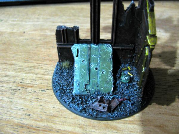 So gave it another drybrush and another wash over each of the areas, then stuck some small slate pieces to a base and painted that with washes too, bit of grass and presto...