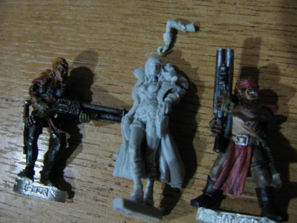 monkey with a stick...monkey with a stick? You are not, my dear sir, refering to the mighty kobold mage 'nobloodywaycanirememberhisname' with that comment are you? I actually found several kobolds, must have been popular in our D&D games. Quite a few 15mm figs - fantasy and sci-fi, a few more that came from the cyber-punk range the dude in shades came from - including a biker which I keep meaning to do something with, several 25mm sci-fi infantry, a few pieces from board games, a half-painted rice crispies character , a few Judge Dredd-The Boardgame figs and other assortments. That was an interesting box to salvage