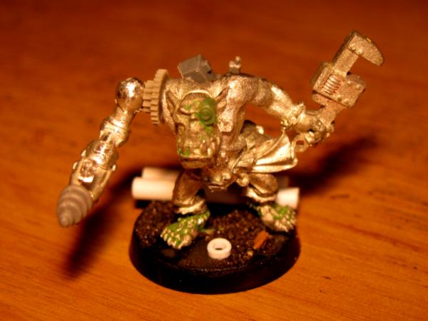 Out of the two tekkies vying for the chance to go spread the word of GorkaMekka to their brothers in Da Mental Leejun the wheeled contender sadly lost his place due to his basic inability to wear a looted beaky-mek's shoulder pad. However just as he was being returnrd to da surjary for re-fitting the dok's produced another contender, plus whispered murmurings of another...