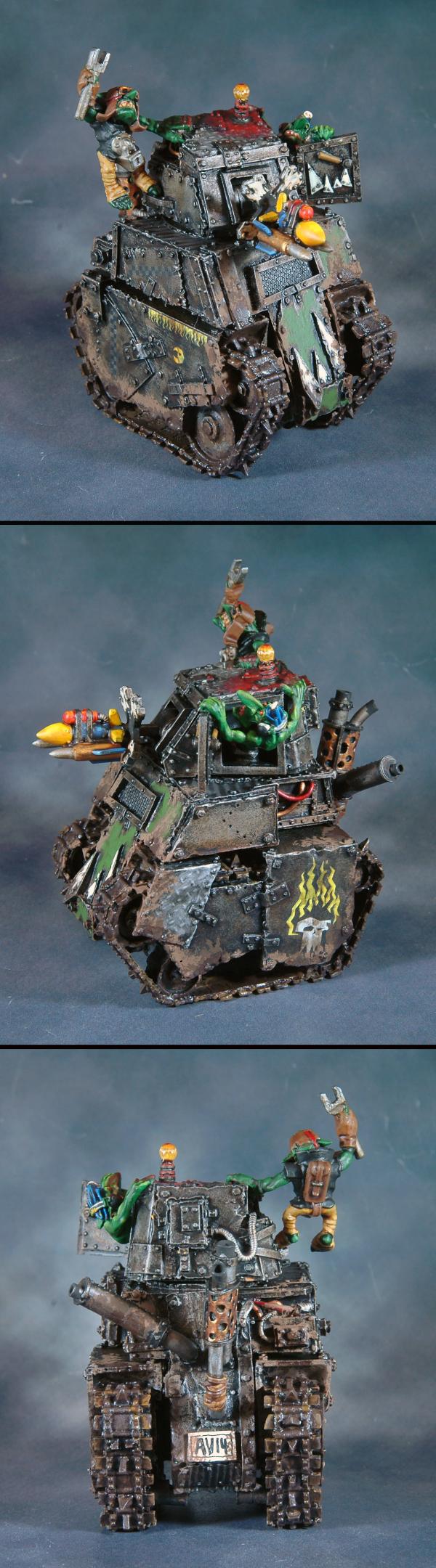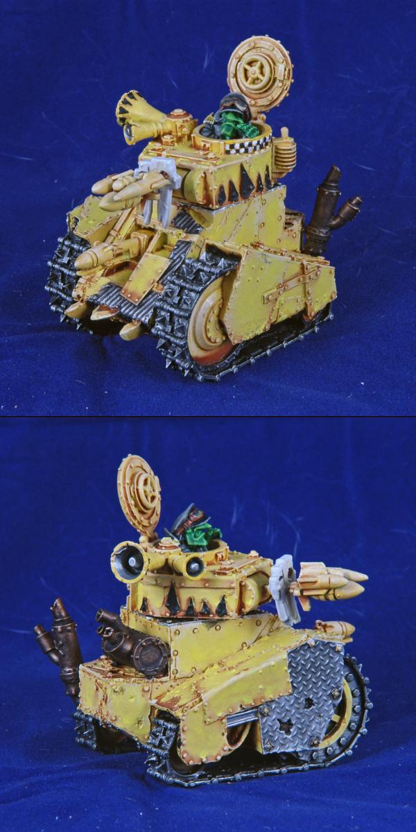 Automatically Appended Next Post: OK, finally have a couple of shots of the second grot tank AKA rokkit buggy. Still very WIP but I've been painting this one with an eye to being able to play it early in the process. Hope you like the general direction. There will be a lot more contrast, colors and free-hand detail 'ere it's finished.