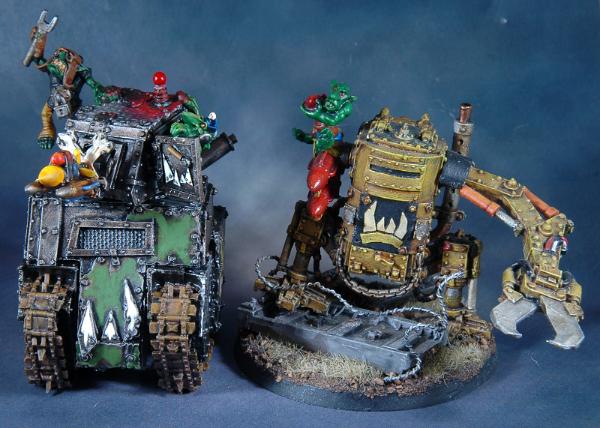 I was hoping to post some progress I'd made on my second grot tank over the last couple of weeks, but I can't find a memory card for my camera. Blast it. Looks like it's time to go to the electronics store. I did have the chance to try a couple of the grot tanks proxied as rokkit buggies and they worked just fine. Look great on the table when fielded with kans too. Hopefully pics soon. Gits Automatically Appended Next Post: