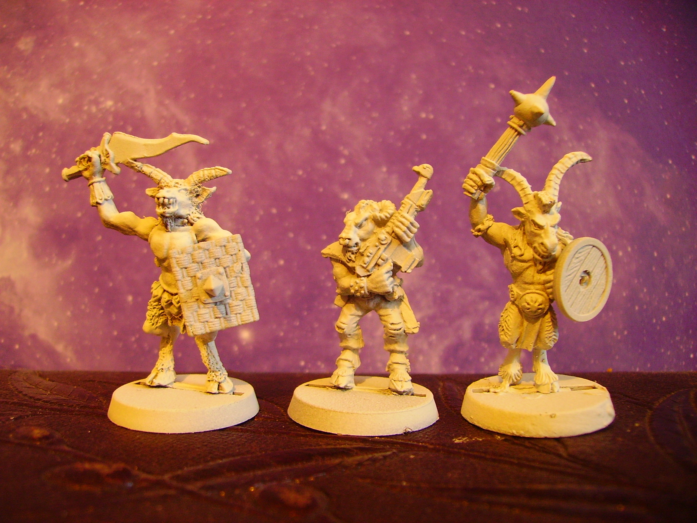 The beastman I got has an autogun and he is holding it pointed up . You have some like him - he is really cool and I will call him fredrick the beastman. Or maybe Derik. I have other beastmen of the spiked club and shield variety but thats ok. A wooden shield, while completly useless for stopping bullets, does give me something fun to paint freehand designs on