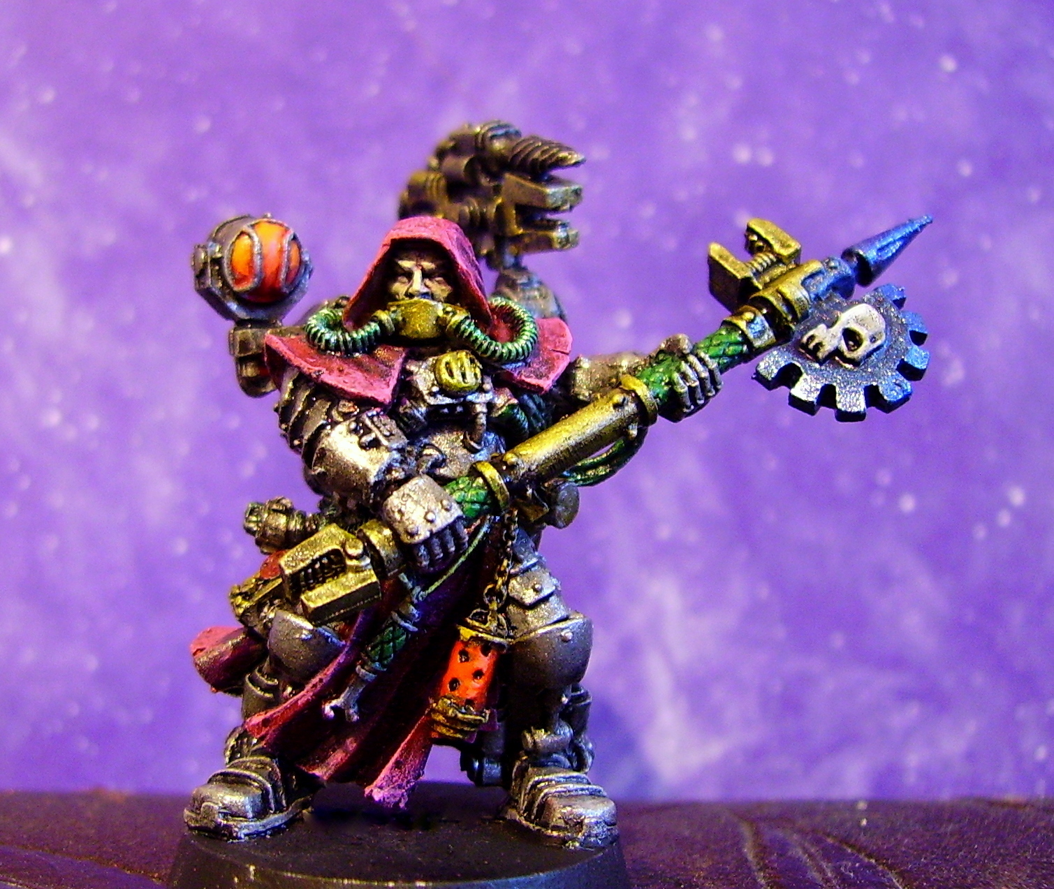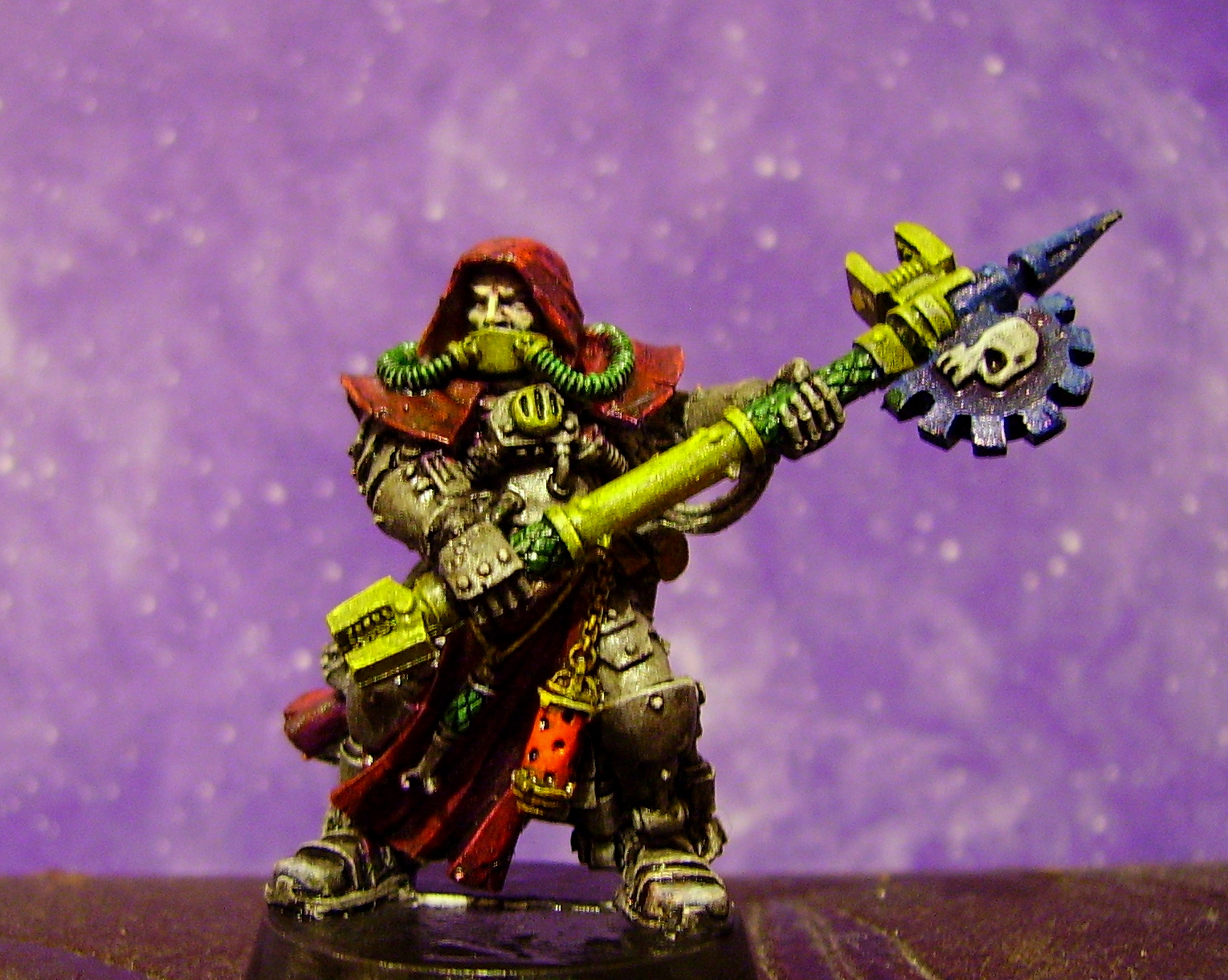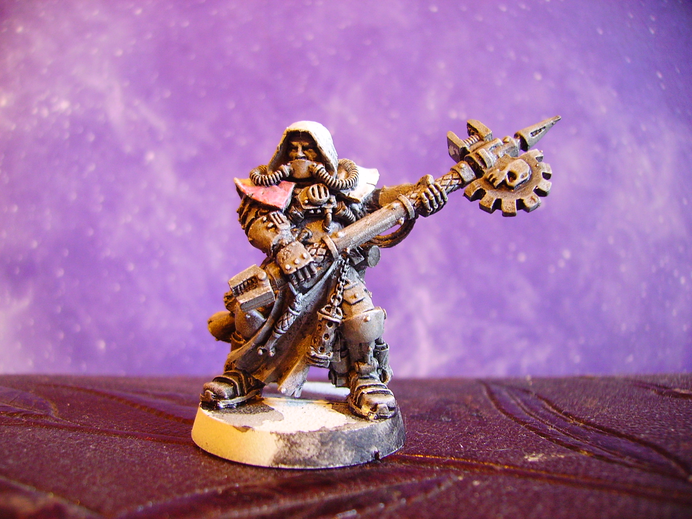 the techpriest loks good painted but the hunched look makes him apear a bit as he would be better off with a not so roughage rich diet...