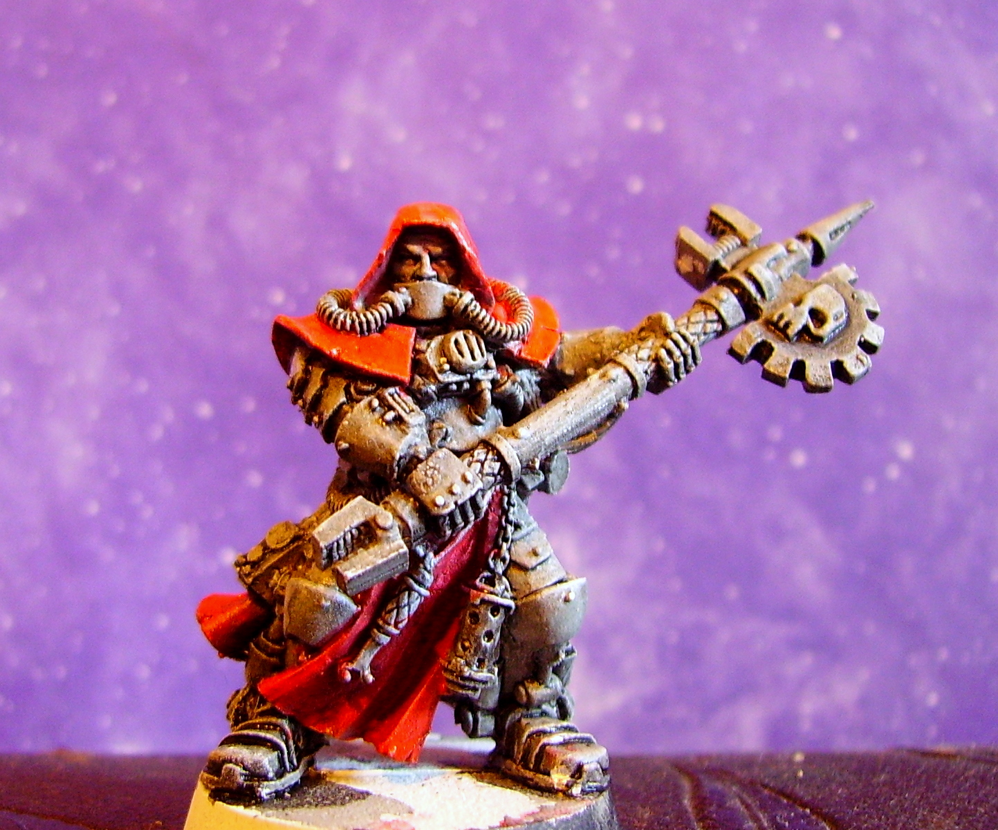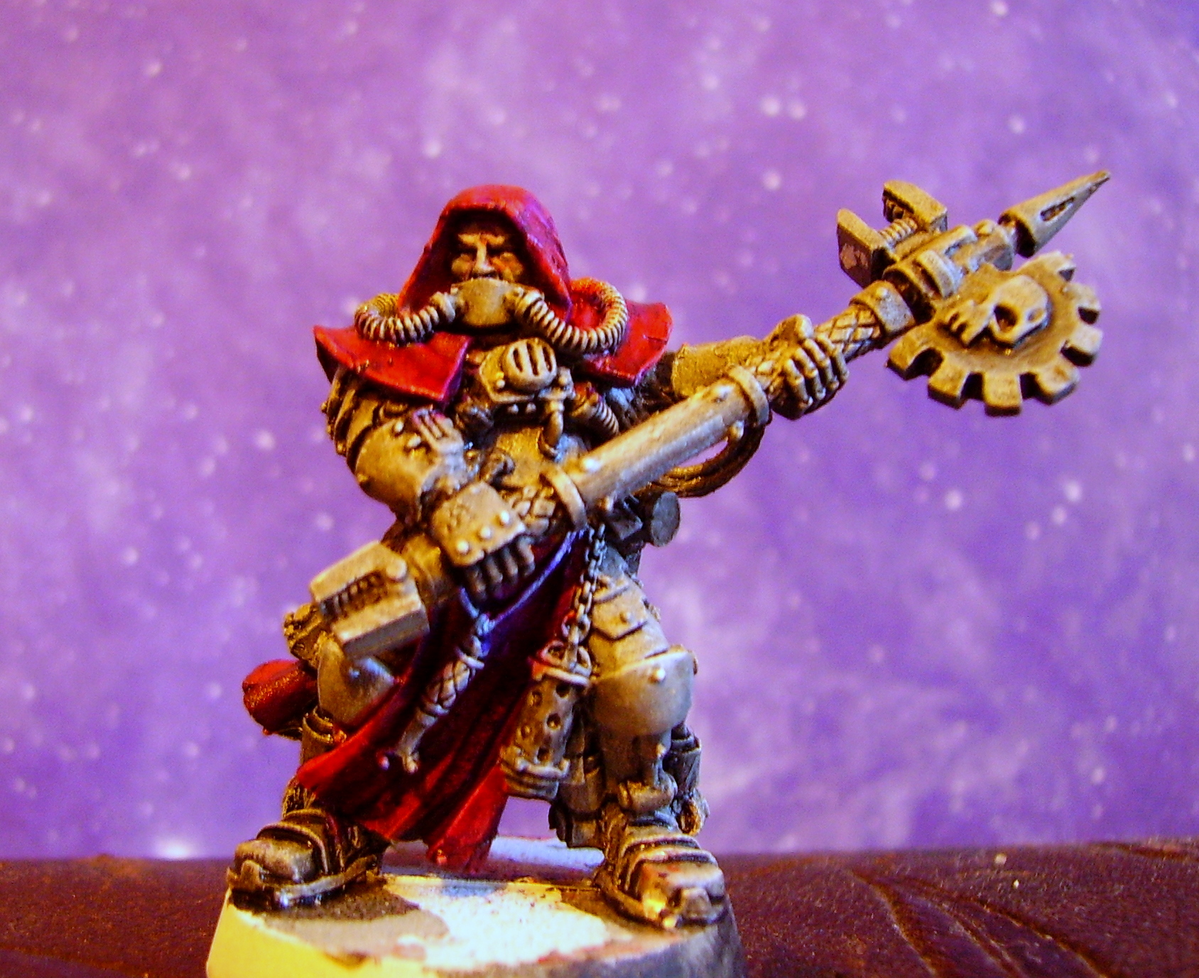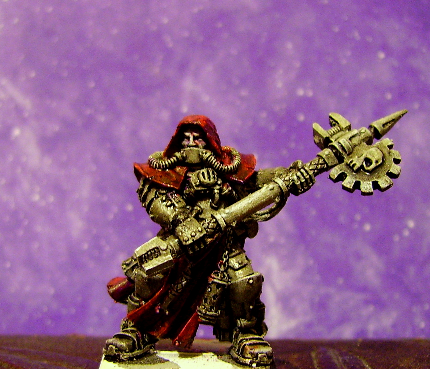 the techpriest loks good painted but the hunched look makes him apear a bit as he would be better off with a not so roughage rich diet...