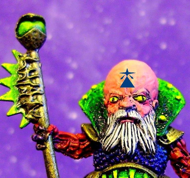 He does look a bit like he could be somekinda squat/genestealer magus!! Maybe he is - genestealer cults would often join forces with chaos cultists according to RT rules on cults.