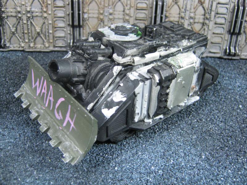 Wow, that's a messed up vindicator o.O Are you going to replace the lost dozer blade? Maybe something like you did with the land raider maw, loots of big teeth in the front.