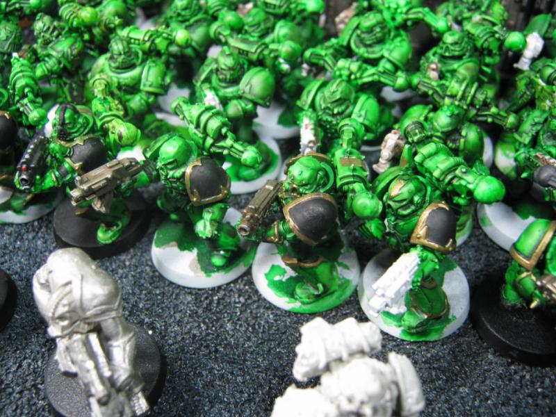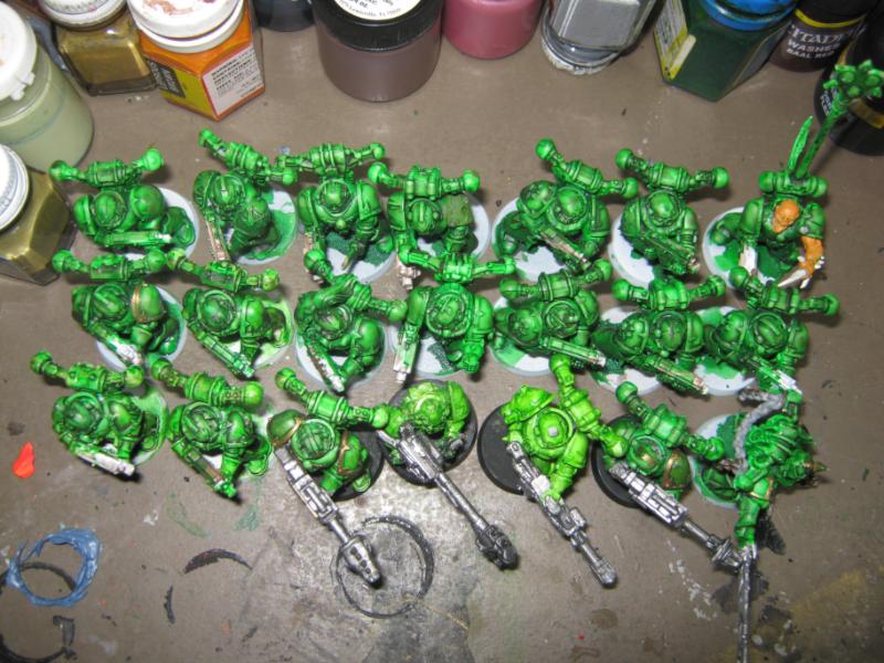 I think your troops would look better with alittle extra paint on them, ecspecially the ones with the old/berzerker backpacks, they are very green.