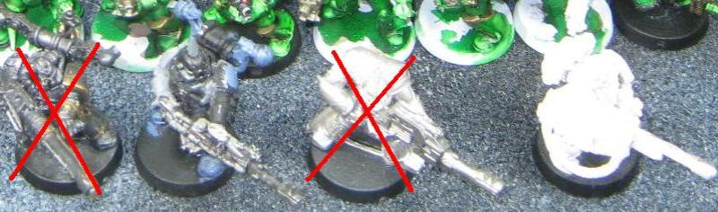 @ Limbo- Aaaggh, you caught me! Yes, you're absolutely right and honestly I know that I've been cutting a few corners lately. The philosophy was to get as many done to a passable tabletop standard and then when things slow down go back and pick out a few detail bits (and yes, I actually do that) but much like when Yggdrasil called me out for not drilling the barrels, I am shamed to have been caught displaying unfinished models as "finished". I'm going to apply more time to the squad I am working on currently and go back to the last 3 squads I've done recently and ensure they are up to standard w/ the rest of the army. Like zadelisto said:
