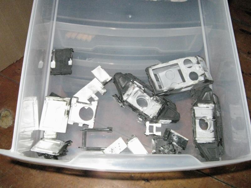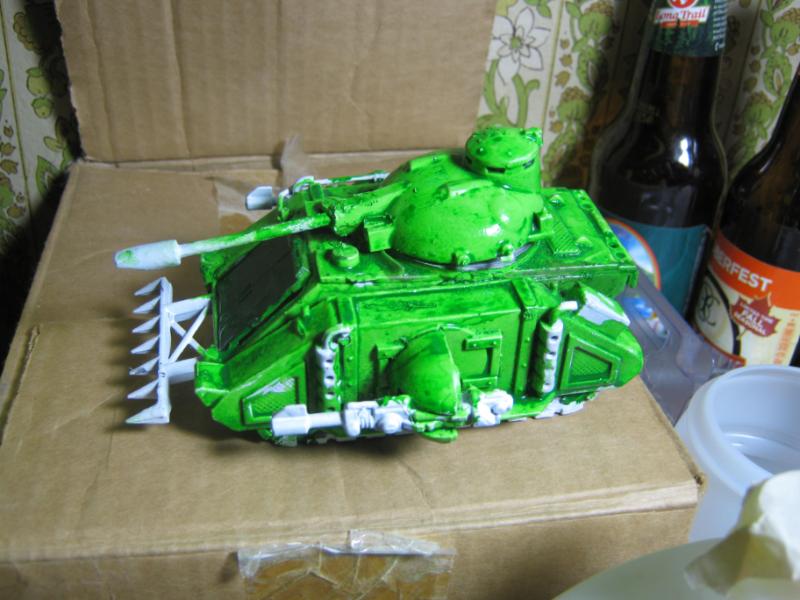 @ zadelistol- I'm not sure, I bought it from an online store that moves a lot of used stuff. If it had been regular model glue (like the last Rhino I rescued) then I would have been in trouble. It's s shame that some people just hammer stuff together, but at the same time ignorance is not necessarily stupidity. We have the benefit of wisdom through experience. And as we both know from the countless mistakes we have made along the way, wisdom is something you gain immediately after you needed it. Ha. And yes, this is destined for a nice coat of cheap paint. In fact every single model you've seen on this blog since I first started painting Death Guard again in November has the same brand of paint on it. My opinion is that "primer" is overrated, and a decent base coat of somehting flat (white, gray, black) is really all that is necessary.