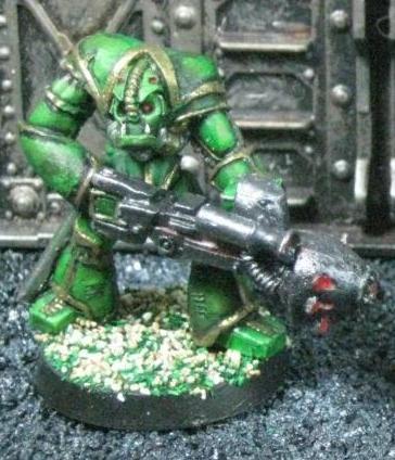 RT models all the way, using old Plasma Cannons counts as Missile Launchers. I went with the old Plasma Cannons as Missile Launchers because (1) I have a lot of them, (2) no one will really notice the difference anyway, and (3) because I already have this guy painted up and he was one of the first models I pained for my Death Guard back in 1997. It would be nice to see him back on the field again.